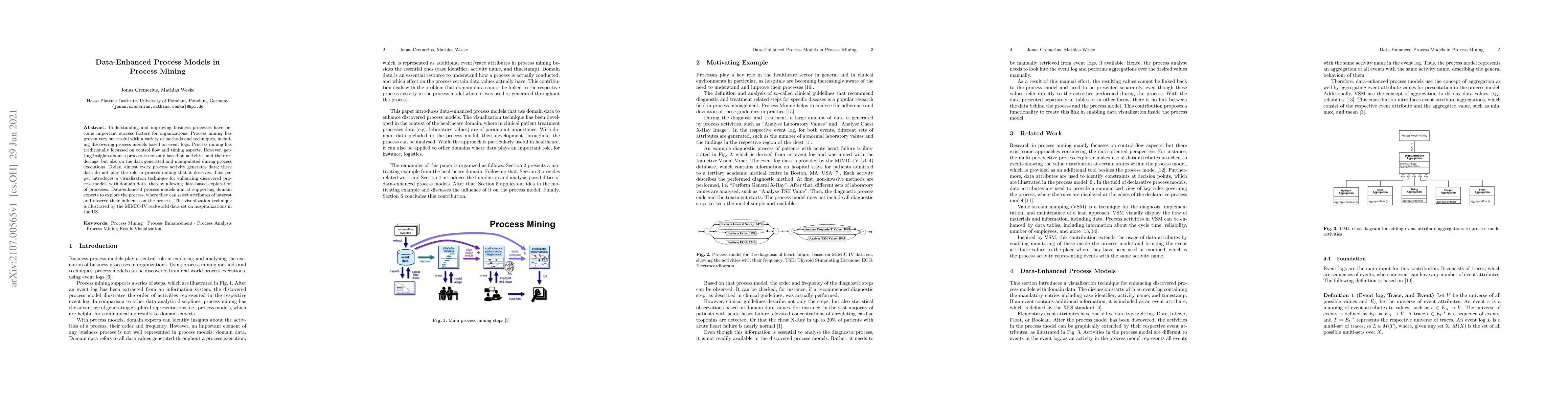 This paper proposes a visualization technique for enhancing process models discovered through process mining with domain data, enabling domain experts to explore processes and observe the influence of selected attributes. The technique is demonstrated using the MIMIC-IV dataset on US hospitalizations.