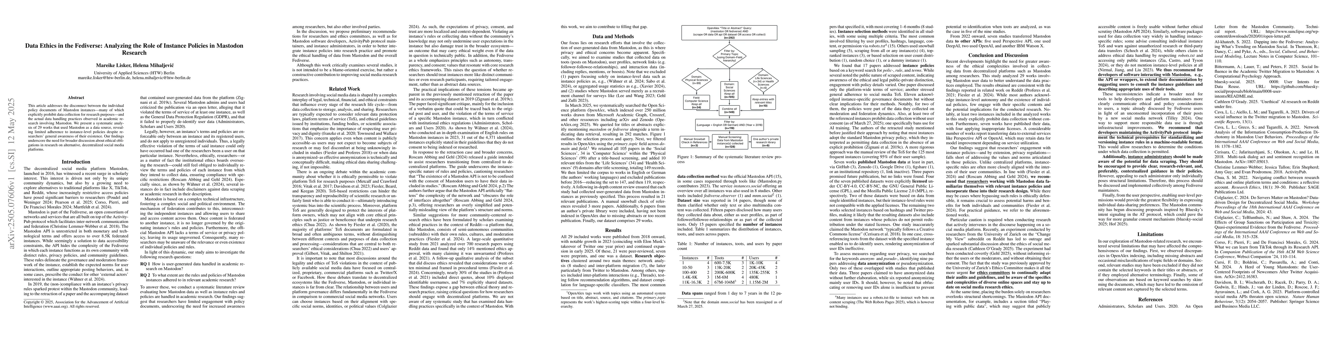 First to analyze the gap between stated instance policies and actual research data handling practices in Mastodon studies