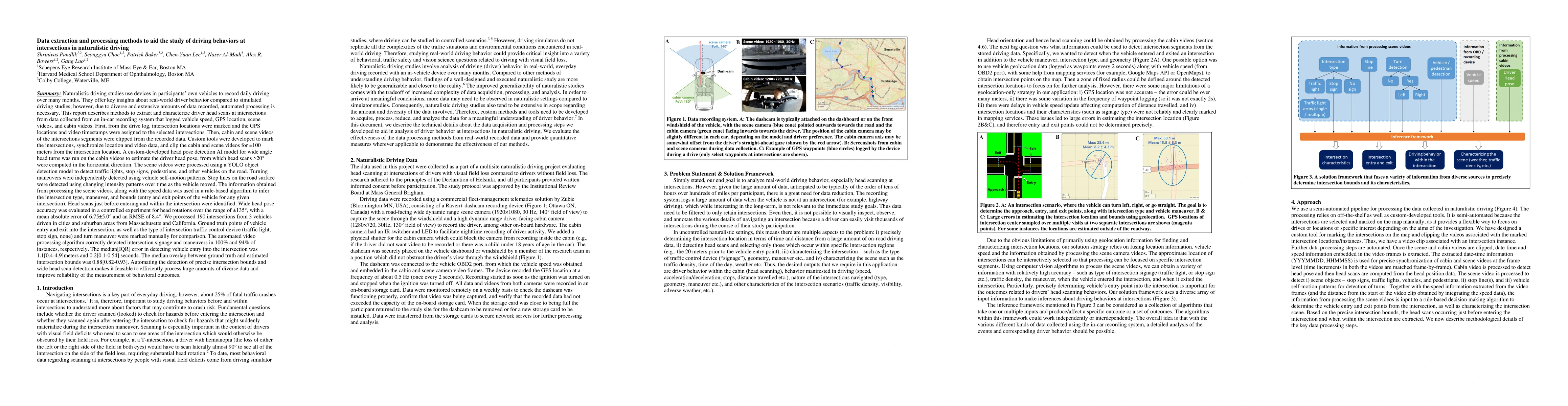 Researchers developed automated methods to extract and process data from naturalistic driving studies to analyze driver behavior at intersections. The algorithms accurately detected intersection signage and maneuvers in most cases, with median errors of 1.1 meters and 0.2 seconds for vehicle entry detection.