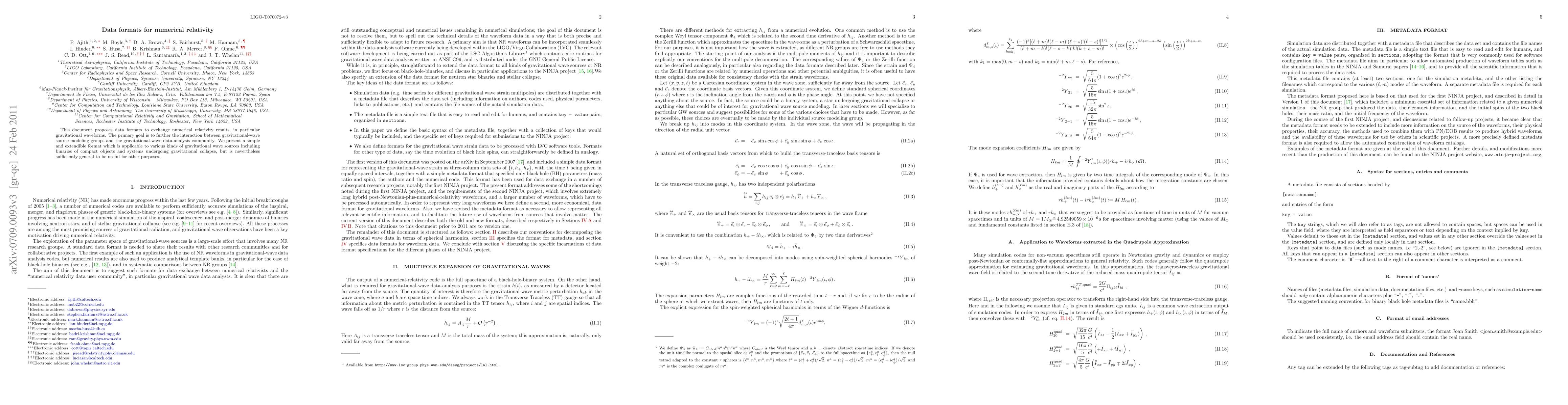 This document proposes data formats to exchange numerical relativity results, in particular gravitational waveforms. The primary goal is to further the interaction between gravitational-wave source modeling groups and the gravitational-wave data-analysis community. We present a simple and extendable format which is applicable to various kinds of gravitational wave sources including binaries of compact objects and systems undergoing gravitational collapse, but is nevertheless sufficiently general to be useful for other purposes.