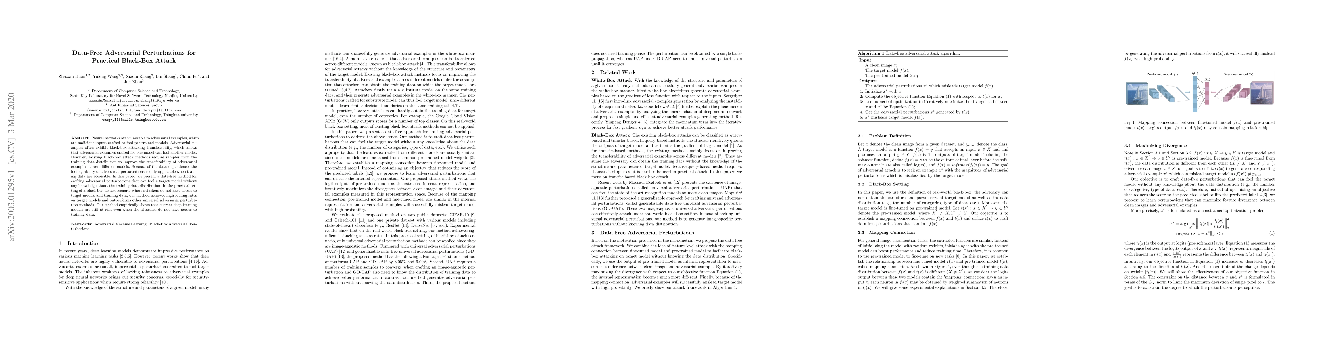 This paper introduces a data-free method for generating adversarial perturbations that can effectively fool target neural networks in black-box attack scenarios without requiring knowledge of the training data. The proposed method achieves high fooling rates and outperforms existing universal perturbation techniques, demonstrating the continued vulnerability of deep learning models to adversarial attacks.