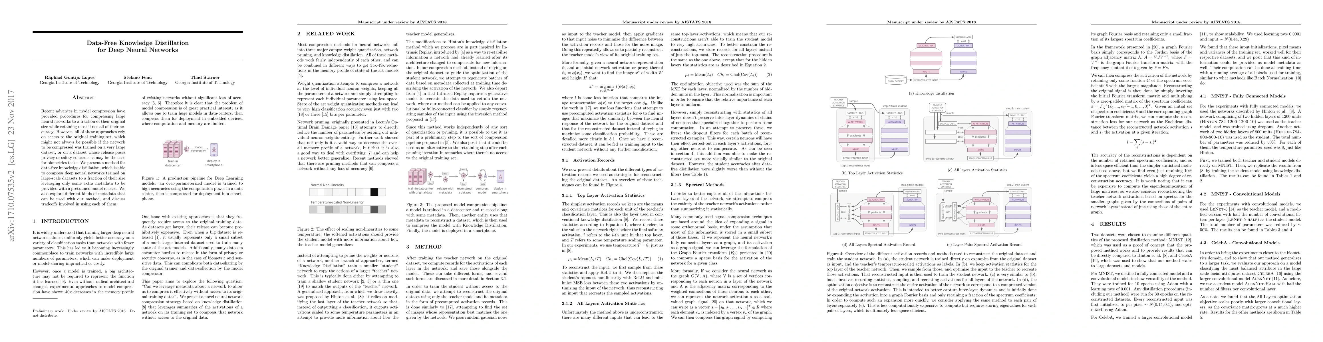 This paper introduces a data-free knowledge distillation method for compressing deep neural networks without requiring access to the original training data. It leverages extra metadata from a pretrained model to achieve significant size reduction while maintaining accuracy, addressing privacy and safety concerns in sensitive applications.