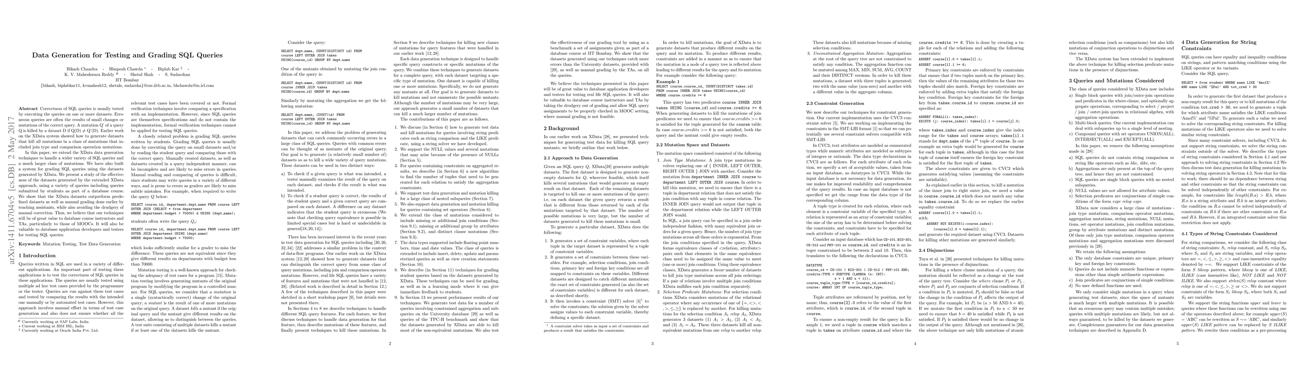 This paper extends the XData system to generate datasets that effectively test and grade a wider variety of SQL queries, including a larger class of mutations. The study shows that these datasets outperform predefined ones and manual grading, offering significant benefits for database course instructors, TAs, and application developers.