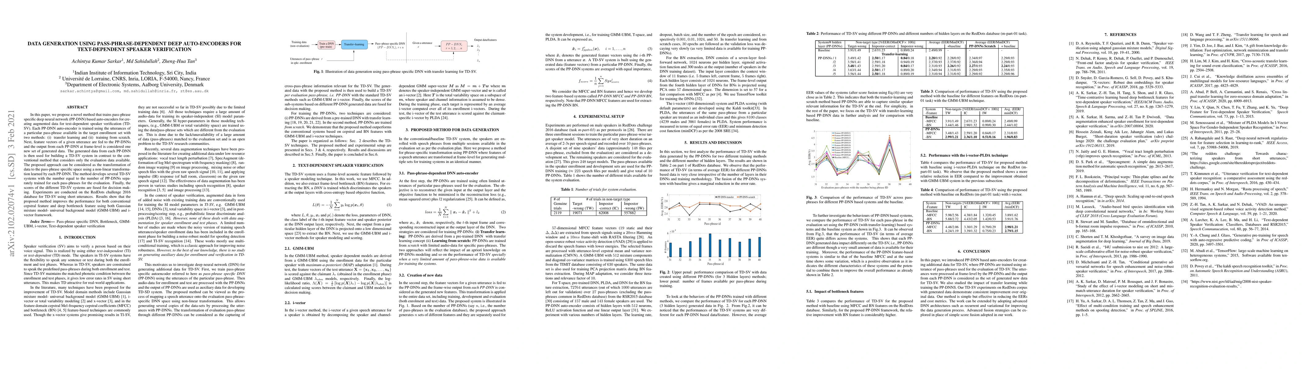 This paper proposes a method to enhance text-dependent speaker verification (TD-SV) using pass-phrase specific deep neural network (PP-DNN) based auto-encoders to generate augmented data. The approach improves TD-SV performance by transforming data into pass-phrase specific spaces using non-linear transformations learned by PP-DNNs, and fusing scores from multiple TD-SV systems.