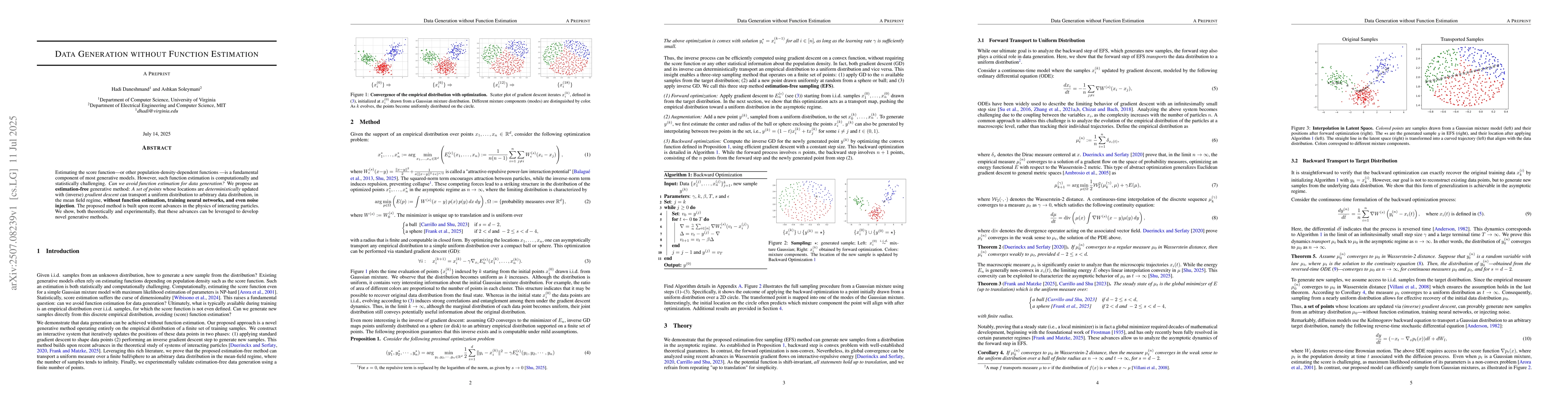 Estimating the score function (or other population-density-dependent functions) is a fundamental component of most generative models. However, such function estimation is computationally and statistically challenging. Can we avoid function estimation for data generation? We propose an estimation-free generative method: A set of points whose locations are deterministically updated with (inverse) gradient descent can transport a uniform distribution to arbitrary data distribution, in the mean field regime, without function estimation, training neural networks, and even noise injection. The proposed method is built upon recent advances in the physics of interacting particles. We show, both theoretically and experimentally, that these advances can be leveraged to develop novel generative methods.