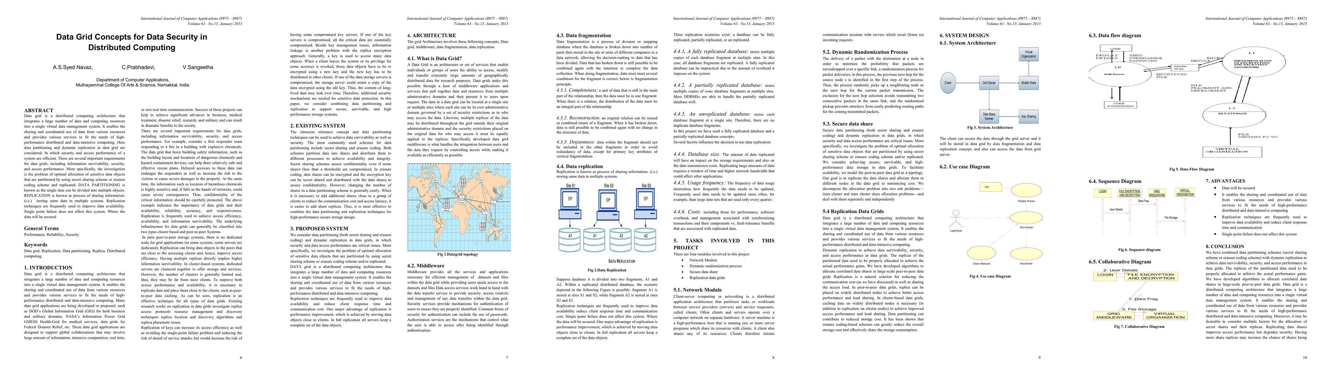 This paper explores data grid concepts for enhancing data security in distributed computing, focusing on efficient data partitioning and dynamic replication to optimize security and access performance. It investigates optimal allocation of sensitive data objects using secret sharing schemes or erasure coding to ensure data survivability and availability.