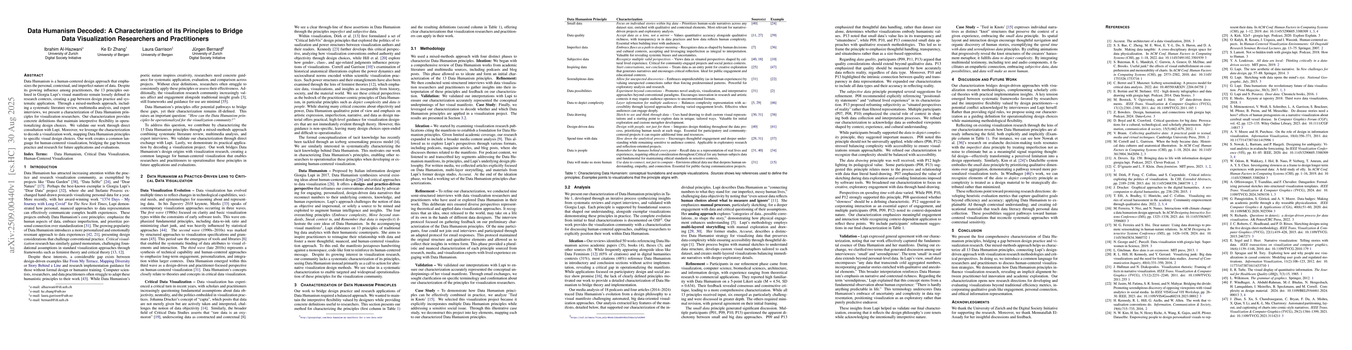 Data Humanism is a human-centered design approach that emphasizes the personal, contextual, and imperfect nature of data. Despite its growing influence among practitioners, the 13 principles outlined in Giorgia Lupi's visual manifesto remain loosely defined in research contexts, creating a gap between design practice and systematic application. Through a mixed-methods approach, including a systematic literature review, multimedia analysis, and expert interviews, we present a characterization of Data Humanism principles for visualization researchers. Our characterization provides concrete definitions that maintain interpretive flexibility in operationalizing design choices. We validate our work through direct consultation with Lupi. Moreover, we leverage the characterization to decode a visualization work, mapping Data Humanism principles to specific visual design choices. Our work creates a common language for human-centered visualization, bridging the gap between practice and research for future applications and evaluations.
