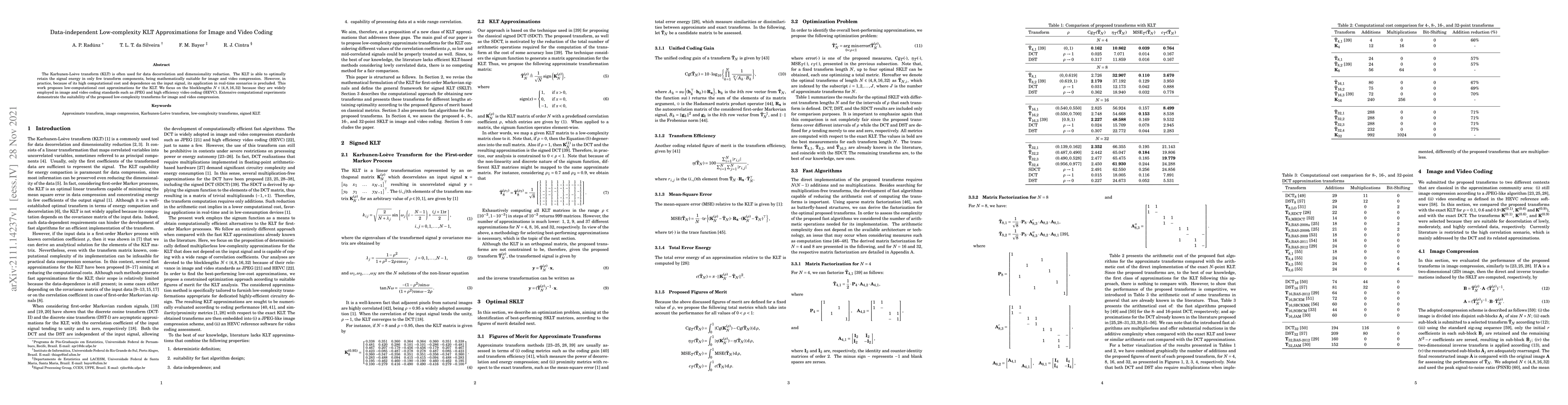 This paper proposes low-complexity approximations of the Karhunen-Loève transform (KLT) for efficient image and video compression, addressing its high computational cost and dependency on input data. The proposed transforms for blocklengths 4, 8, 16, and 32 are shown to be effective through extensive computational experiments.