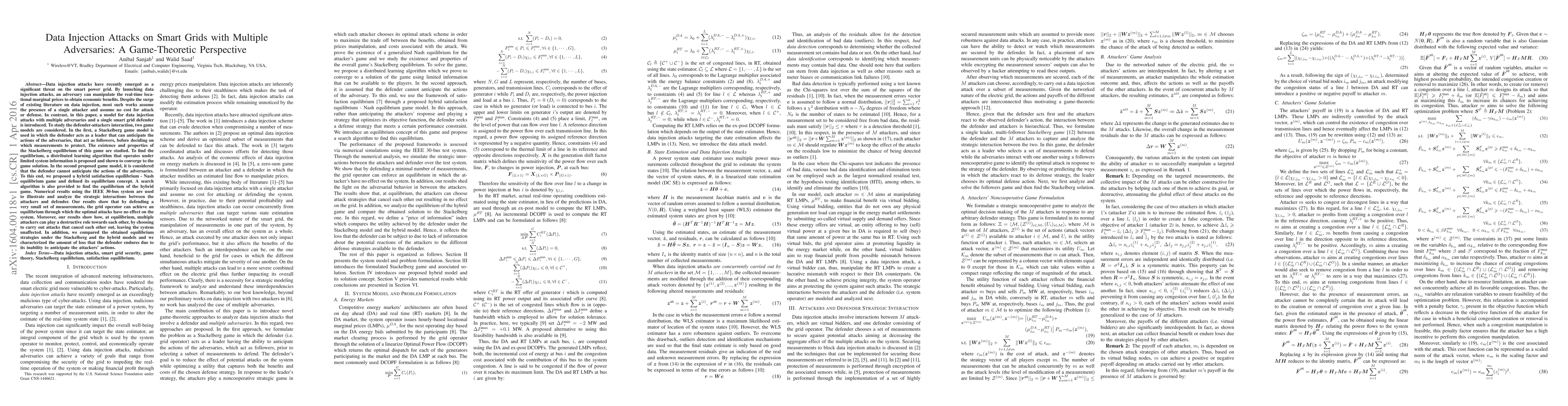 A new study investigates data injection attacks on smart grids with multiple adversaries, proposing two game models to analyze the defender-attackers interaction, revealing how a small set of protected measurements can neutralize optimal attacks and even lead attackers to cancel each other out.