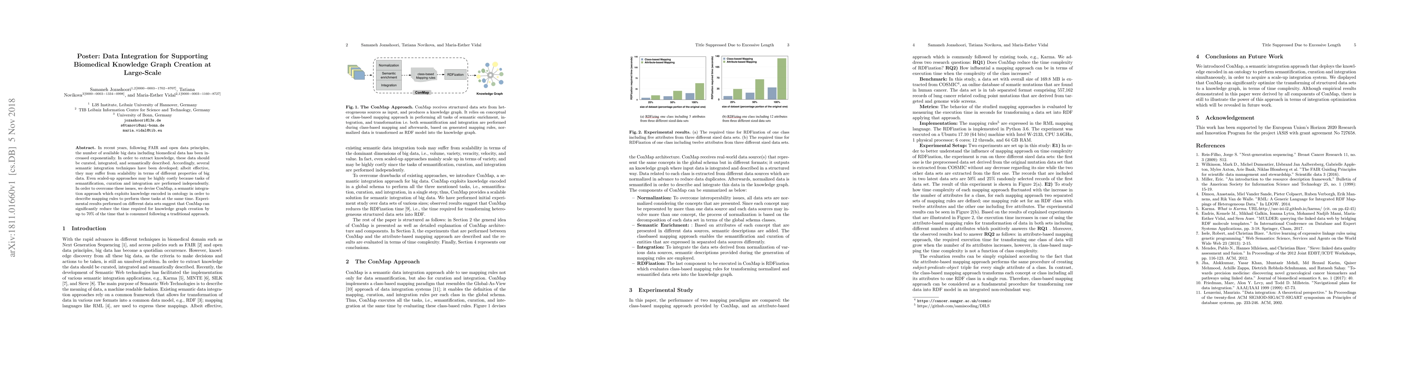 In recent years, following FAIR and open data principles, the number of available big data including biomedical data has been increased exponentially. In order to extract knowledge, these data should be curated, integrated, and semantically described. Accordingly, several semantic integration techniques have been developed; albeit effective, they may suffer from scalability in terms of different properties of big data. Even scaled-up approaches may be highly costly because tasks of semantification, curation and integration are performed independently. In order to overcome these issues, we devise ConMap, a semantic integration approach which exploits knowledge encoded in ontology in order to describe mapping rules to perform these tasks at the same time. Experimental results performed on different data sets suggest that ConMap can significantly reduce the time required for knowledge graph creation by up to 70\% of the time that is consumed following a traditional approach.