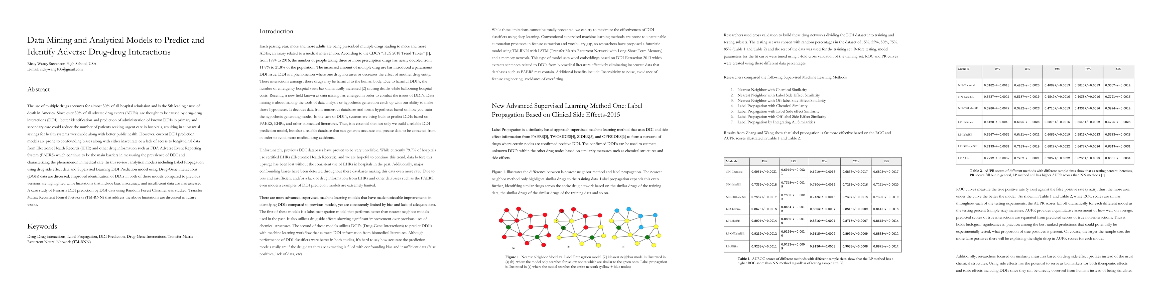 This paper reviews analytical models for predicting adverse drug-drug interactions (DDIs), emphasizing the need for better identification to reduce hospital admissions and improve public health. It discusses improved models like Label Propagation and Supervised Learning DDI Prediction using DGI data, while highlighting their limitations such as bias and inaccuracy. Future work proposes Transfer Matrix Recurrent Neural Networks (TM-RNN) to address these issues.