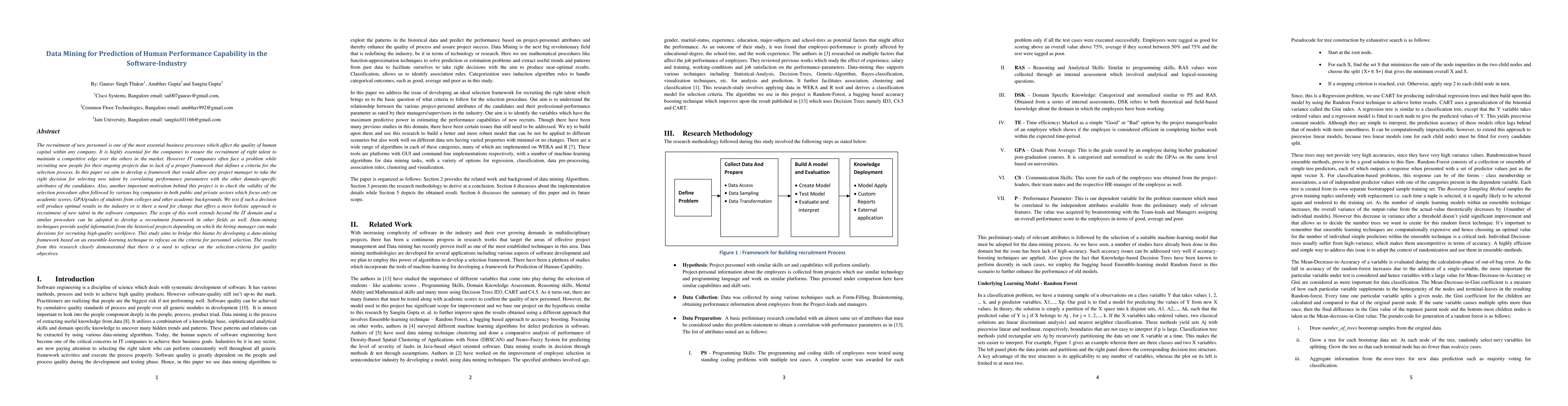The recruitment of new personnel is one of the most essential business processes which affect the quality of human capital within any company. It is highly essential for the companies to ensure the recruitment of right talent to maintain a competitive edge over the others in the market. However IT companies often face a problem while recruiting new people for their ongoing projects due to lack of a proper framework that defines a criteria for the selection process. In this paper we aim to develop a framework that would allow any project manager to take the right decision for selecting new talent by correlating performance parameters with the other domain-specific attributes of the candidates. Also, another important motivation behind this project is to check the validity of the selection procedure often followed by various big companies in both public and private sectors which focus only on academic scores, GPA/grades of students from colleges and other academic backgrounds. We test if such a decision will produce optimal results in the industry or is there a need for change that offers a more holistic approach to recruitment of new talent in the software companies. The scope of this work extends beyond the IT domain and a similar procedure can be adopted to develop a recruitment framework in other fields as well. Data-mining techniques provide useful information from the historical projects depending on which the hiring-manager can make decisions for recruiting high-quality workforce. This study aims to bridge this hiatus by developing a data-mining framework based on an ensemble-learning technique to refocus on the criteria for personnel selection. The results from this research clearly demonstrated that there is a need to refocus on the selection-criteria for quality objectives.