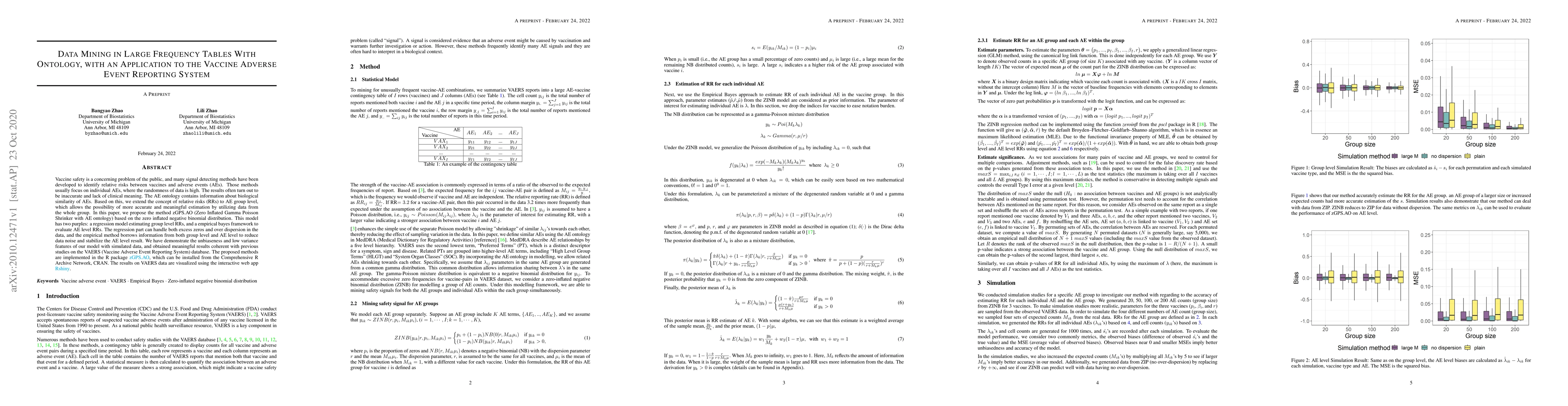 This paper proposes the zGPS.AO method to improve the accuracy and clinical relevance of identifying relative risks between vaccines and adverse events by grouping similar adverse events using an ontology. The method addresses data randomness and noise through a regression model and empirical Bayes framework, demonstrating unbiasedness and low variance with simulated data and meaningful results on the VAERS database. The method is available in the R package zGPS.AO and results are visualized via an Rshiny web app.