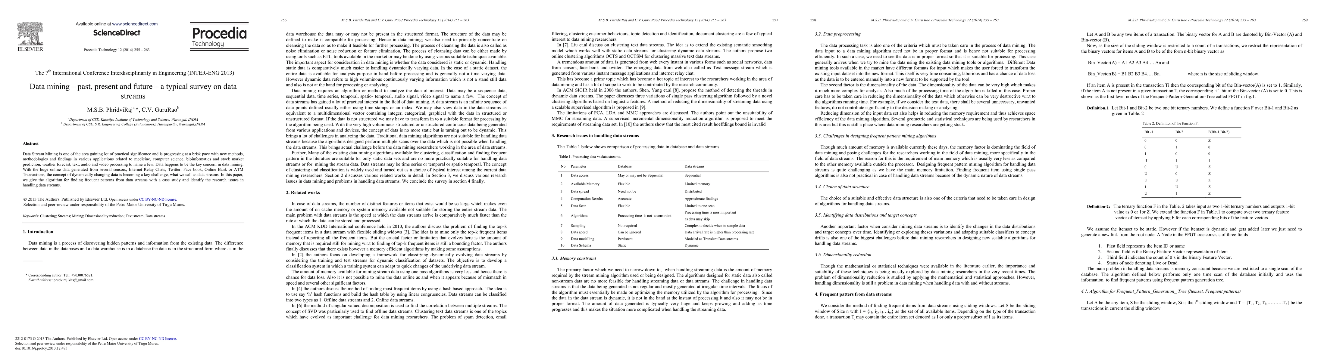 This paper explores Data Stream Mining, a growing field that analyzes dynamic data from various sources like sensors and social media platforms to identify patterns and trends. It presents an algorithm for finding frequent patterns in data streams and highlights research issues in handling this type of changing data.