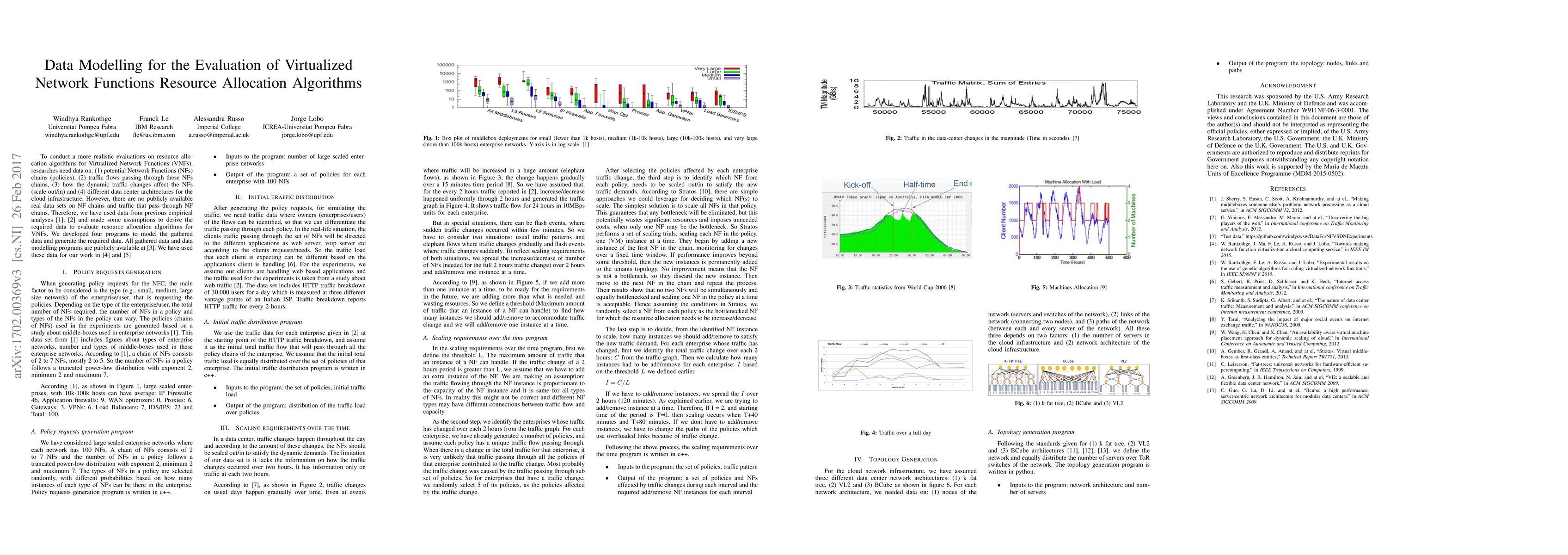This paper develops data modelling techniques to evaluate resource allocation algorithms for Virtualized Network Functions (VNFs). It creates synthetic data on NF chains, traffic flows, and dynamic traffic changes, as no real datasets exist, and makes the data and modelling programs publicly available on GitHub.