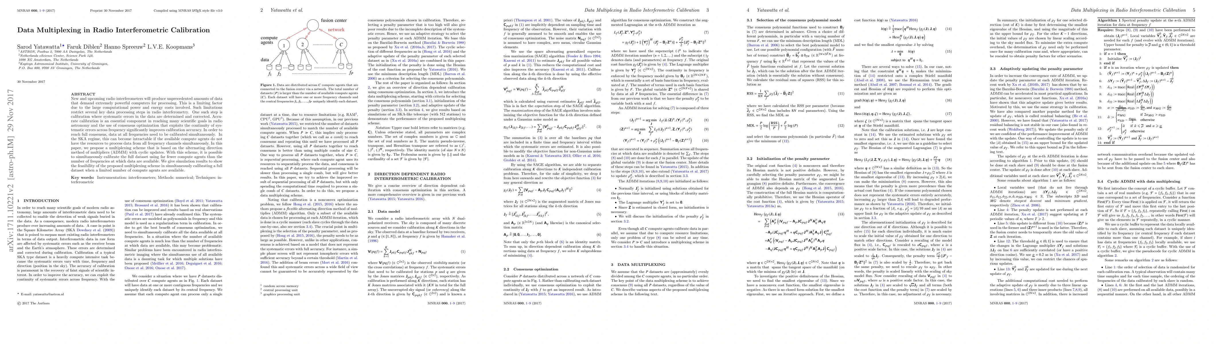 The paper proposes a multiplexing scheme based on the Alternating Direction Method of Multipliers (ADMM) with cyclic updates for simultaneous calibration of full datasets in radio interferometry, using fewer compute agents than the number of frequency channels.