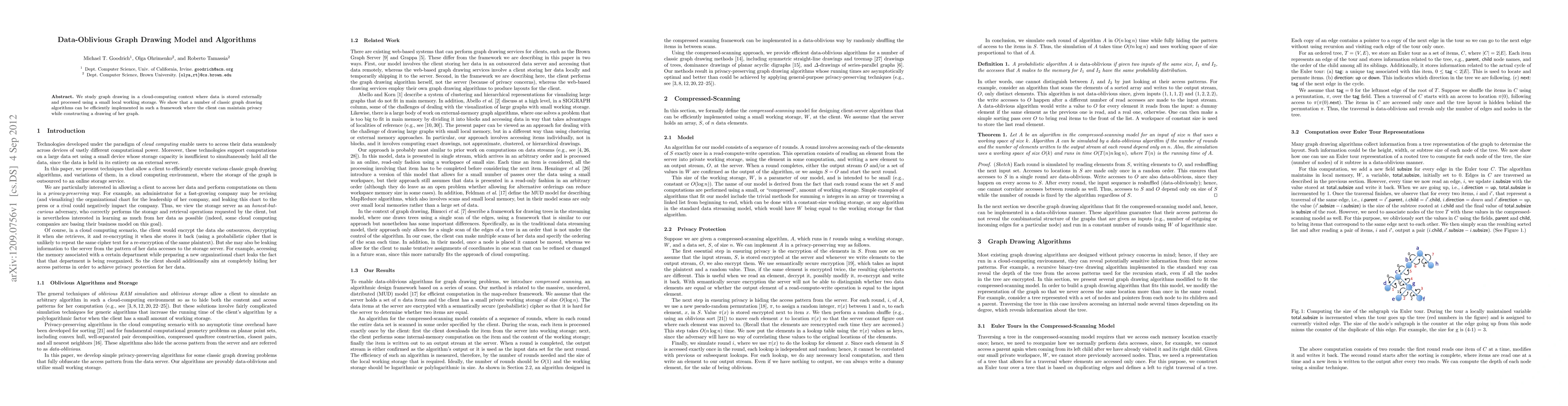 Summary: This paper explores efficient data-oblivious graph drawing algorithms in cloud computing, enabling privacy-preserving graph visualizations where data remains external, allowing clients to maintain confidentiality during the drawing process.