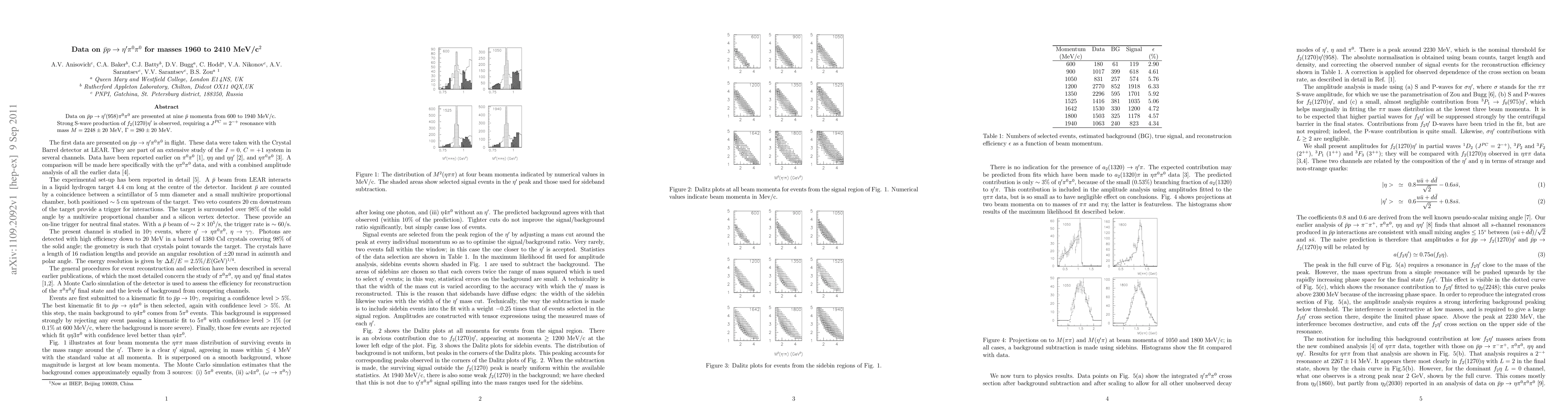 Summary: This study presents data on antiproton-proton interactions producing etaprime mesons and two neutral pions within a mass range of 1960 to 2410 MeV/c^2, revealing strong S-wave production of a new resonance, f_2(1270)-etaprime, identified as a J^{PC} = 2^{-+} particle with a mass of 2248±20 MeV and width of 280±20 MeV.