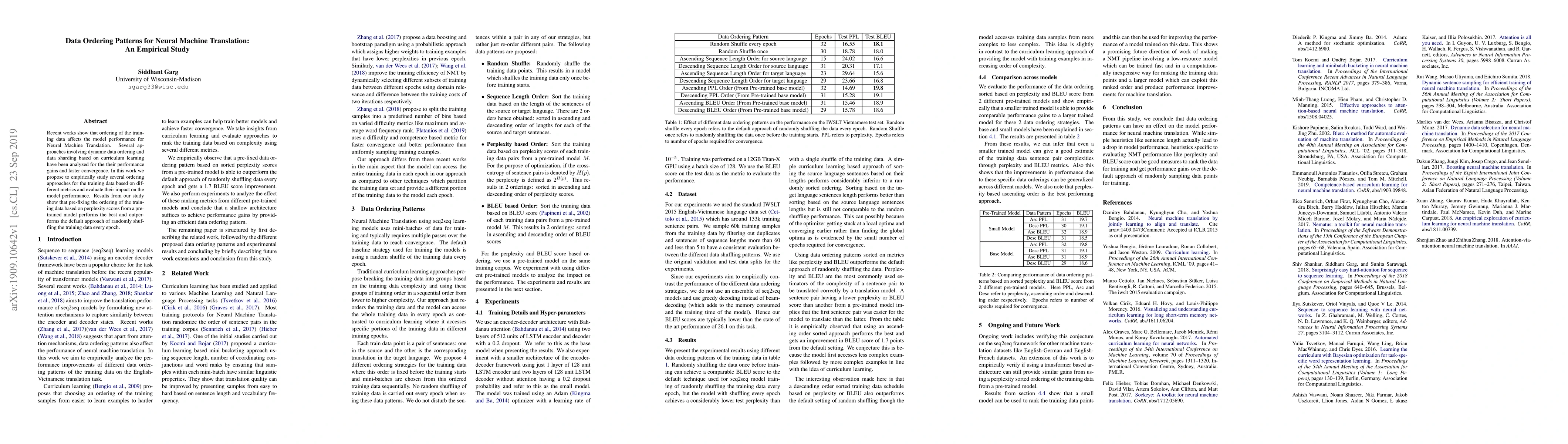 Researchers found that pre-fixing data ordering based on perplexity scores from a pre-trained model improves Neural Machine Translation performance, outperforming random shuffling of training data.