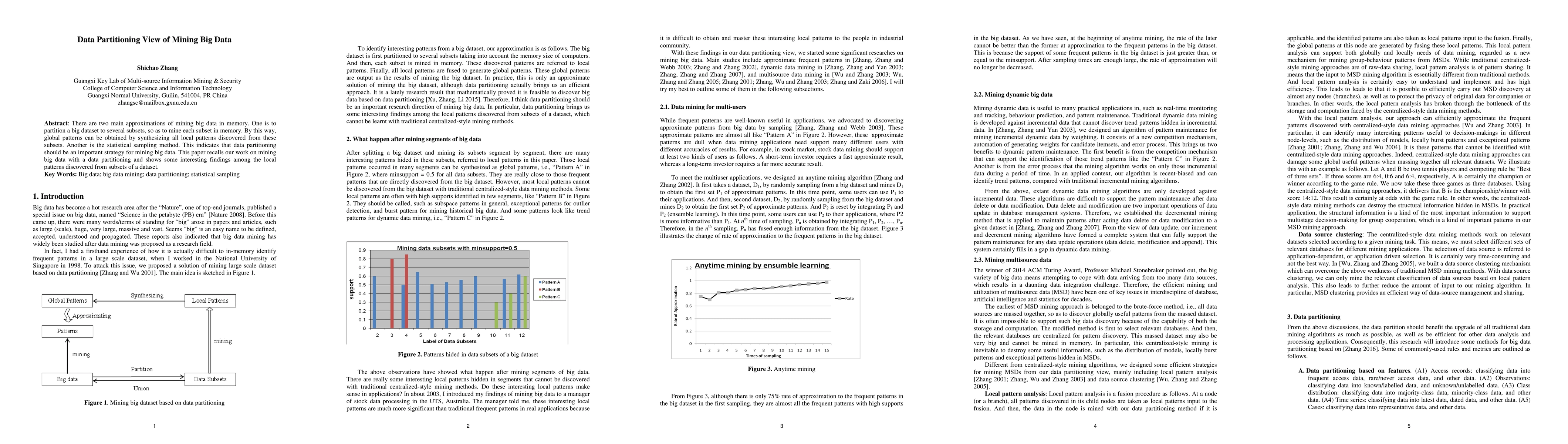 This paper explores the data partitioning approach for mining big data, demonstrating how partitioning a large dataset into subsets for in-memory analysis can yield global patterns by synthesizing local patterns. It highlights the significance of data partitioning and presents findings from local pattern discoveries in dataset subsets.