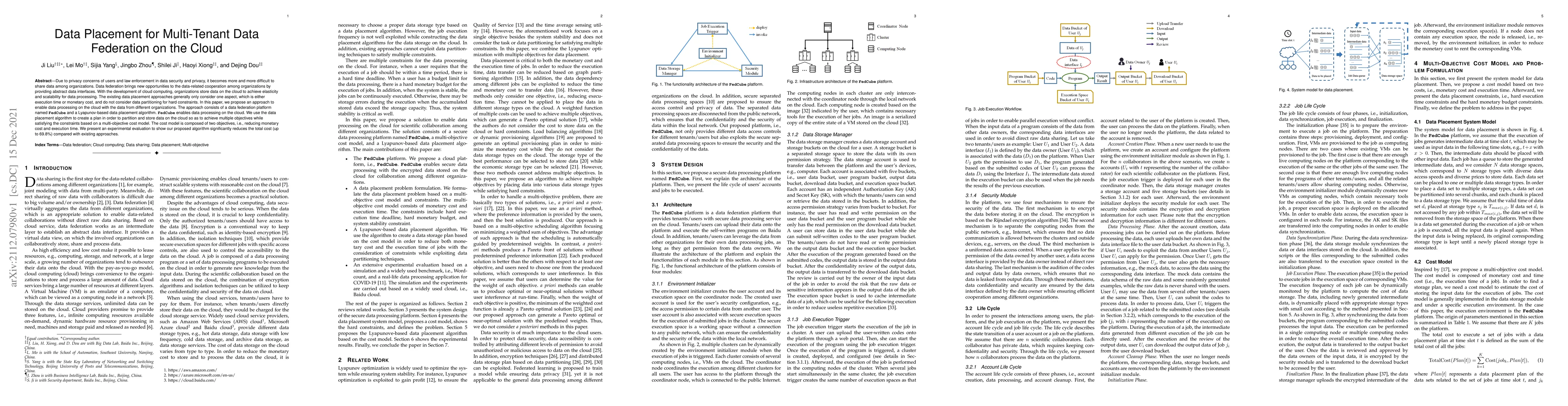 This paper proposes FedCube, a data federation platform for multi-tenant data on the cloud, along with a Lyapunov-based data placement algorithm to optimize both monetary cost and execution time, achieving up to 69.8% reduction in total cost compared to existing methods.