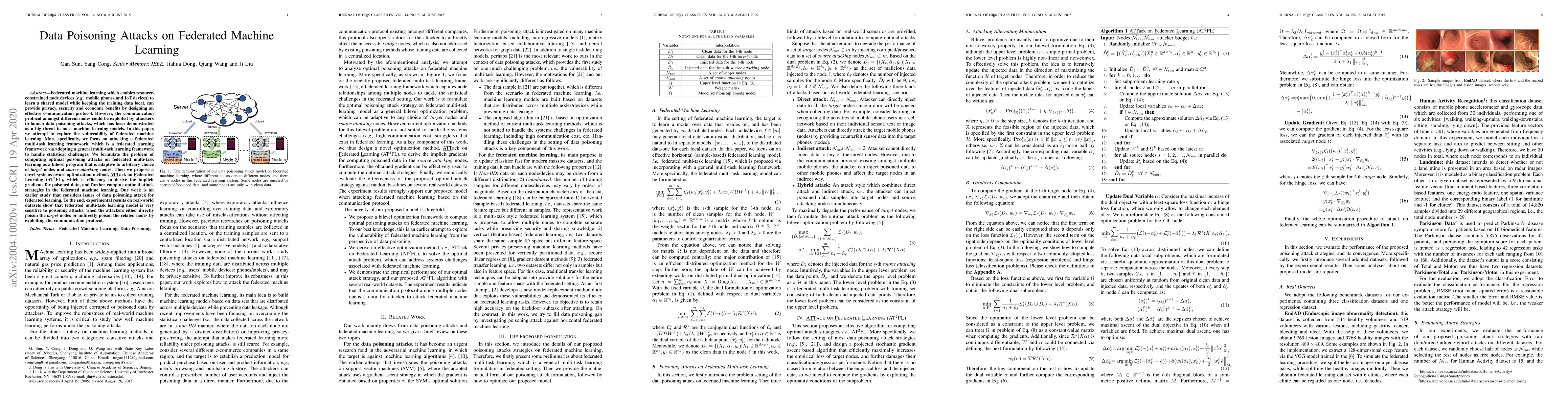 Federated machine learning which enables resource constrained node devices (e.g., mobile phones and IoT devices) to learn a shared model while keeping the training data local, can provide privacy, security and economic benefits by designing an effective communication protocol. However, the communication protocol amongst different nodes could be exploited by attackers to launch data poisoning attacks, which has been demonstrated as a big threat to most machine learning models. In this paper, we attempt to explore the vulnerability of federated machine learning. More specifically, we focus on attacking a federated multi-task learning framework, which is a federated learning framework via adopting a general multi-task learning framework to handle statistical challenges. We formulate the problem of computing optimal poisoning attacks on federated multi-task learning as a bilevel program that is adaptive to arbitrary choice of target nodes and source attacking nodes. Then we propose a novel systems-aware optimization method, ATTack on Federated Learning (AT2FL), which is efficiency to derive the implicit gradients for poisoned data, and further compute optimal attack strategies in the federated machine learning. Our work is an earlier study that considers issues of data poisoning attack for federated learning. To the end, experimental results on real-world datasets show that federated multi-task learning model is very sensitive to poisoning attacks, when the attackers either directly poison the target nodes or indirectly poison the related nodes by exploiting the communication protocol.