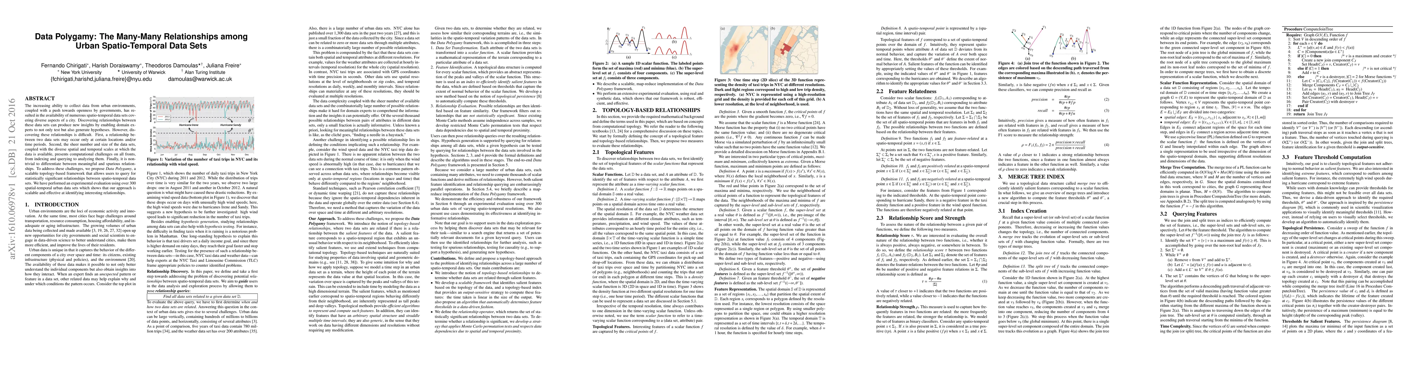The paper introduces Data Polygamy, a scalable framework for discovering statistically significant relationships among numerous urban spatio-temporal data sets, addressing challenges of location-specific, temporal, and computational complexities. Experimental results demonstrate its effectiveness and scalability in identifying meaningful relationships.