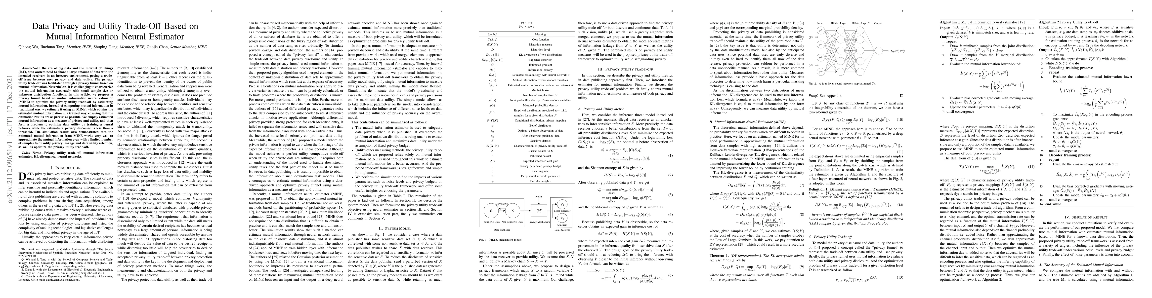 This paper proposes a mutual information neural estimator (MINE) to optimize the trade-off between data privacy and utility in big data scenarios. It uses MINE to accurately estimate mutual information, even with small sample sizes, and leverages this to balance privacy leakage and data utility retention effectively.