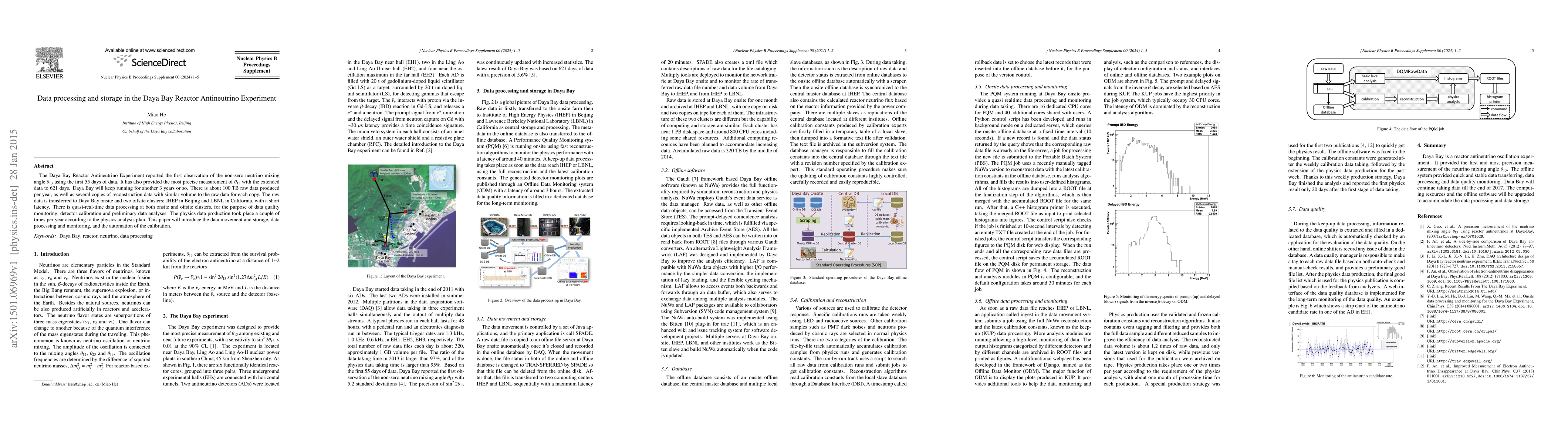 The Daya Bay Reactor Antineutrino Experiment has produced over 100 TB of raw data per year, which is processed and stored in a distributed system for analysis, with key findings including precise measurements of the neutrino mixing angle theta13 and real-time data processing for monitoring and calibration.