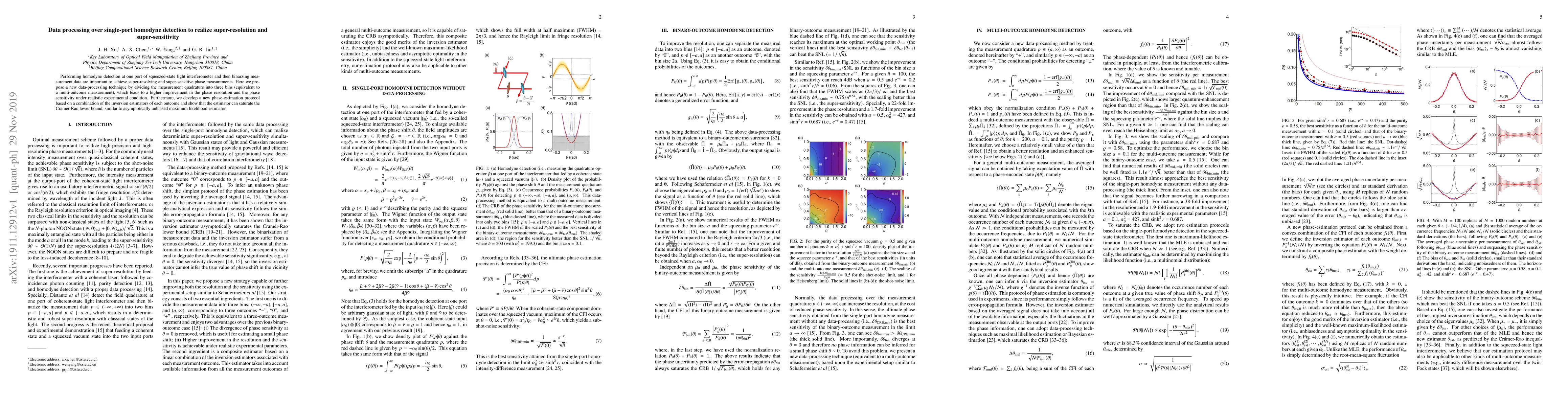 This paper proposes a novel data-processing technique for single-port homodyne detection using squeezed-state light, dividing measurement quadrature into three bins to enhance phase resolution and sensitivity. The new phase-estimation protocol combines inversion estimators, achieving near-optimal performance and saturating the Cramer-Rao lower bound.