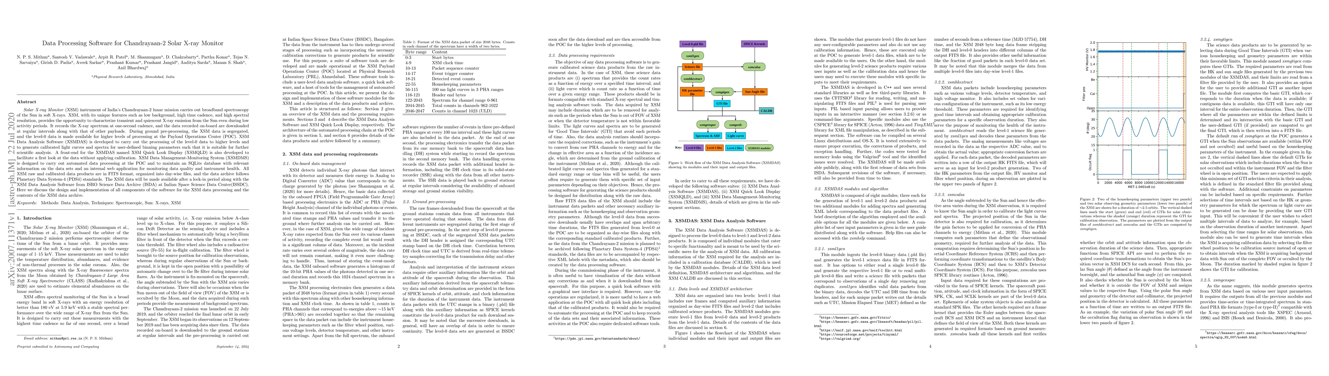 The research presents a comprehensive data processing software suite, XSMDAS, for the Chandrayaan-2 Solar X-ray Monitor (XSM) instrument, which includes modules for data extraction, calibration, spectrum generation, and data archive management.