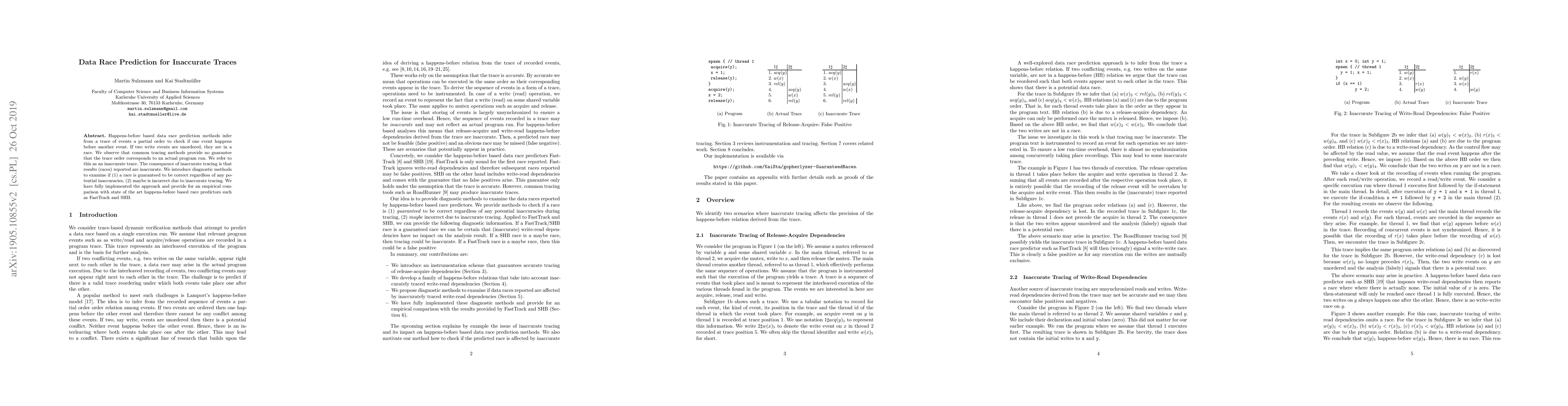 Happens-before based data race prediction methods infer from a trace of events a partial order to check if one event happens before another event. If two two write events are unordered, they are in a race. We observe that common tracing methods provide no guarantee that the trace order corresponds to an actual program run. The consequence of inaccurate tracing is that results (races) reported are inaccurate. We introduce diagnostic methods to examine if (1) a race is guaranteed to be correct regardless of any potential inaccuracies, (2) maybe is incorrect due to inaccurate tracing. We have fully implemented the approach and provide for an empirical comparison with state of the art happens-before based race predictors such as FastTrack and SHB.
