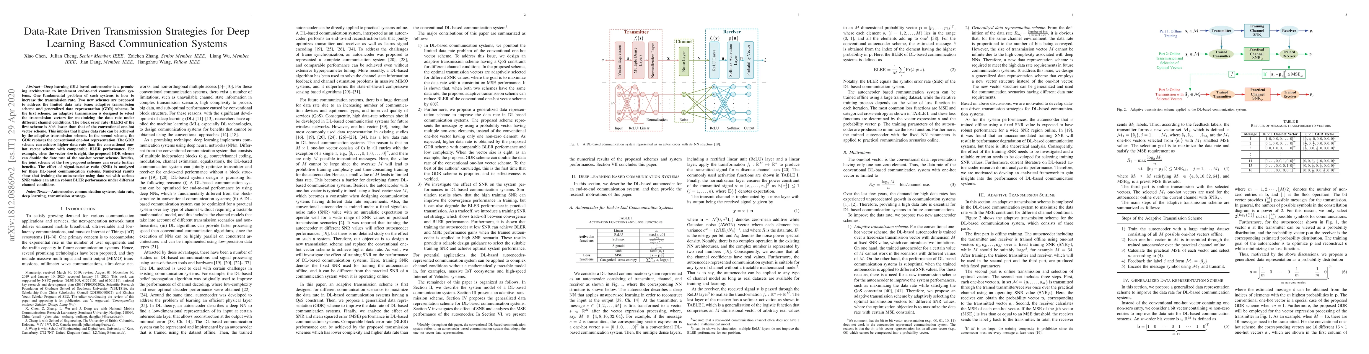 Deep learning (DL) based autoencoder is a promising architecture to implement end-to-end communication systems. One fundamental problem of such systems is how to increase the transmission rate. Two new schemes are proposed to address the limited data rate issue: adaptive transmission scheme and generalized data representation (GDR) scheme. In the first scheme, an adaptive transmission is designed to select the transmission vectors for maximizing the data rate under different channel conditions. The block error rate (BLER) of the first scheme is 80% lower than that of the conventional one-hot vector scheme. This implies that higher data rate can be achieved by the adaptive transmission scheme. In the second scheme, the GDR replaces the conventional one-hot representation. The GDR scheme can achieve higher data rate than the conventional one-hot vector scheme with comparable BLER performance. For example, when the vector size is eight, the proposed GDR scheme can double the date rate of the one-hot vector scheme. Besides, the joint scheme of the two proposed schemes can create further benefits. The effect of signal-to-noise ratio (SNR) is analyzed for these DL-based communication systems. Numerical results show that training the autoencoder using data set with various SNR values can attain robust BLER performance under different channel conditions.