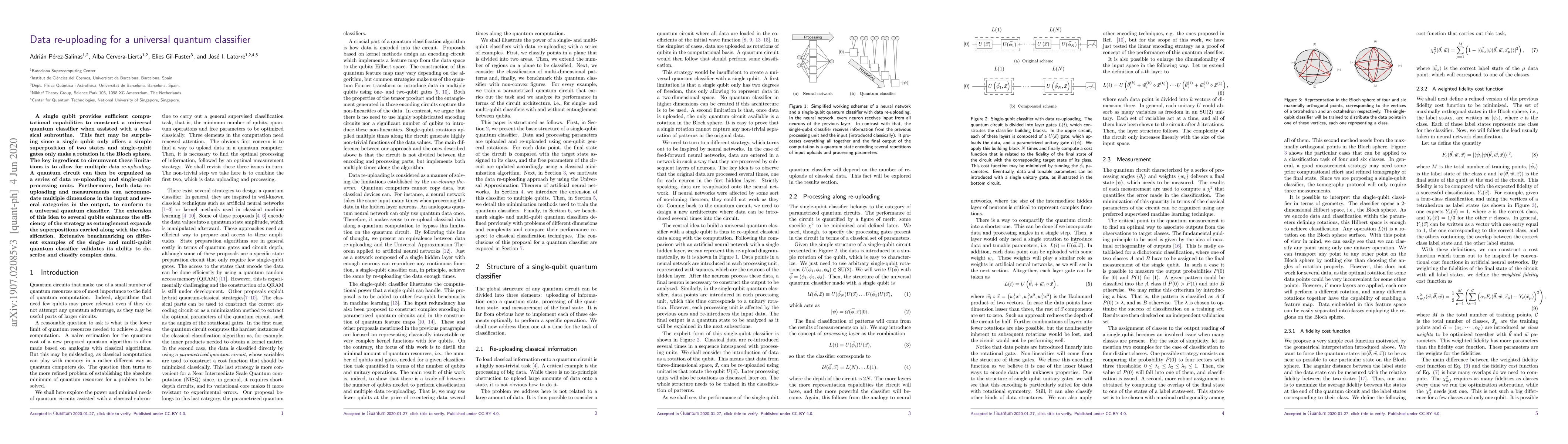 A single qubit provides sufficient computational capabilities to construct a universal quantum classifier when assisted with a classical subroutine. This fact may be surprising since a single qubit only offers a simple superposition of two states and single-qubit gates only make a rotation in the Bloch sphere. The key ingredient to circumvent these limitations is to allow for multiple data re-uploading. A quantum circuit can then be organized as a series of data re-uploading and single-qubit processing units. Furthermore, both data re-uploading and measurements can accommodate multiple dimensions in the input and several categories in the output, to conform to a universal quantum classifier. The extension of this idea to several qubits enhances the efficiency of the strategy as entanglement expands the superpositions carried along with the classification. Extensive benchmarking on different examples of the single- and multi-qubit quantum classifier validates its ability to describe and classify complex data.