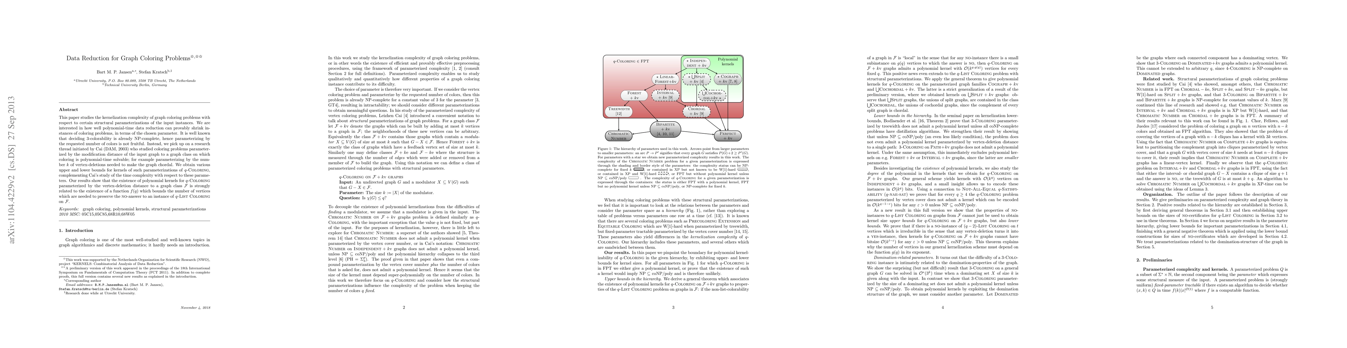 The paper studies the kernelization complexity of graph coloring problems with respect to structural parameterizations, focusing on how well polynomial-time data reduction can shrink instances of coloring problems based on chosen parameters.