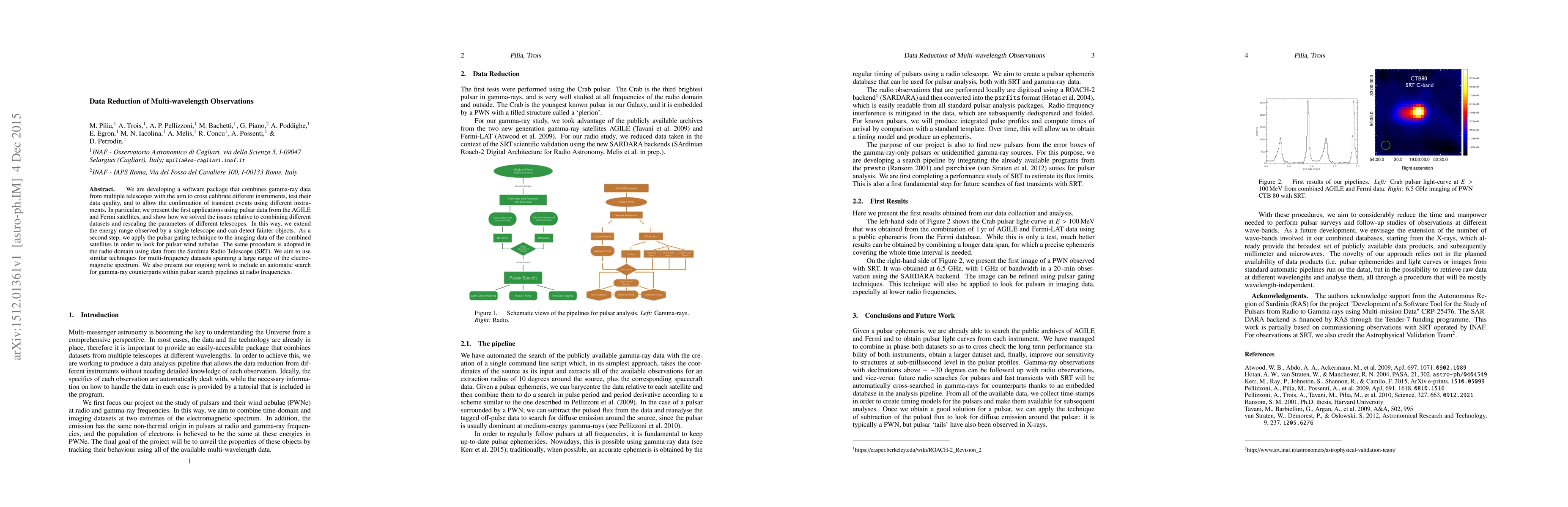 Multi-messenger astronomy is becoming the key to understanding the Universe from a comprehensive perspective. In most cases, the data and the technology are already in place, therefore it is important to provide an easily-accessible package that combines datasets from multiple telescopes at different wavelengths. In order to achieve this, we are working to produce a data analysis pipeline that allows the data reduction from different instruments without needing detailed knowledge of each observation. Ideally, the specifics of each observation are automatically dealt with, while the necessary information on how to handle the data in each case is provided by a tutorial that is included in the program. We first focus our project on the study of pulsars and their wind nebulae (PWNe) at radio and gamma-ray frequencies. In this way, we aim to combine time-domain and imaging datasets at two extremes of the electromagnetic spectrum. In addition, the emission has the same non-thermal origin in pulsars at radio and gamma-ray frequencies, and the population of electrons is believed to be the same at these energies in PWNe. The final goal of the project will be to unveil the properties of these objects by tracking their behaviour using all of the available multi-wavelength data.