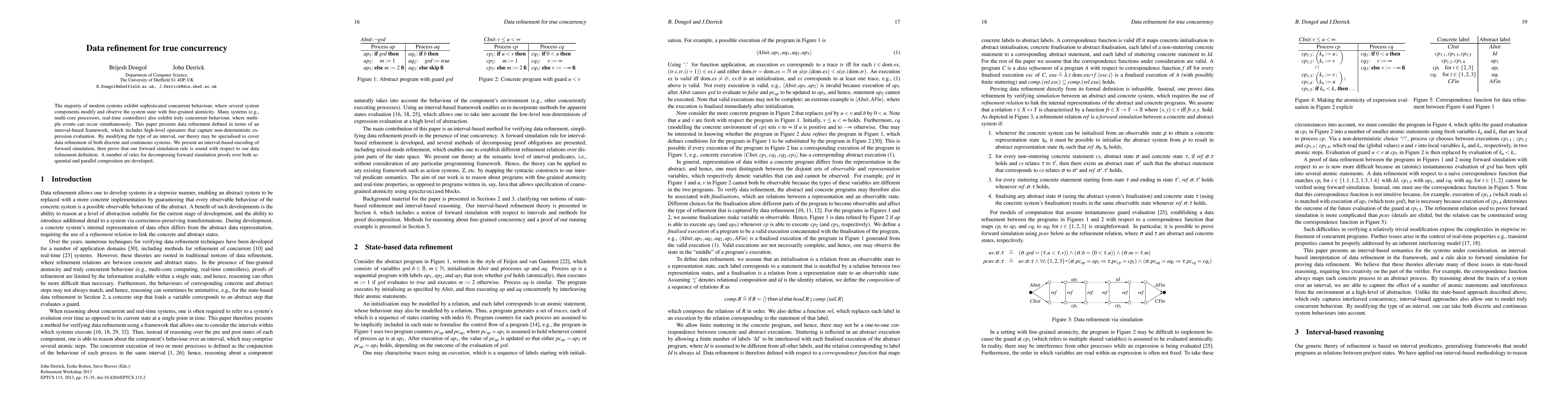 The majority of modern systems exhibit sophisticated concurrent behaviour, where several system components modify and observe the system state with fine-grained atomicity. Many systems (e.g., multi-core processors, real-time controllers) also exhibit truly concurrent behaviour, where multiple events can occur simultaneously. This paper presents data refinement defined in terms of an interval-based framework, which includes high-level operators that capture non-deterministic expression evaluation. By modifying the type of an interval, our theory may be specialised to cover data refinement of both discrete and continuous systems. We present an interval-based encoding of forward simulation, then prove that our forward simulation rule is sound with respect to our data refinement definition. A number of rules for decomposing forward simulation proofs over both sequential and parallel composition are developed.