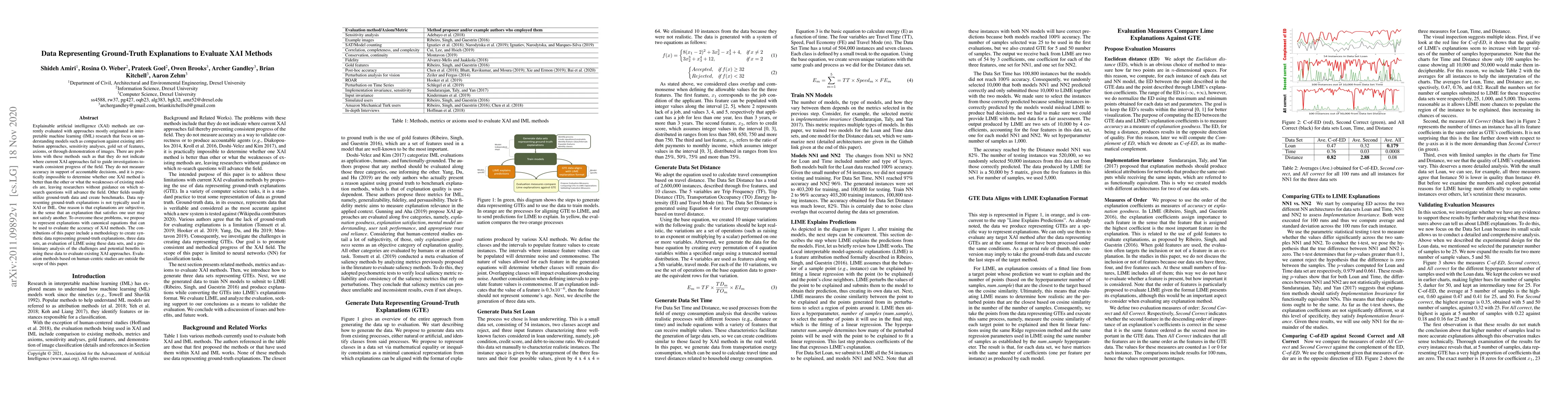 Explainable artificial intelligence (XAI) methods are currently evaluated with approaches mostly originated in interpretable machine learning (IML) research that focus on understanding models such as comparison against existing attribution approaches, sensitivity analyses, gold set of features, axioms, or through demonstration of images. There are problems with these methods such as that they do not indicate where current XAI approaches fail to guide investigations towards consistent progress of the field. They do not measure accuracy in support of accountable decisions, and it is practically impossible to determine whether one XAI method is better than the other or what the weaknesses of existing models are, leaving researchers without guidance on which research questions will advance the field. Other fields usually utilize ground-truth data and create benchmarks. Data representing ground-truth explanations is not typically used in XAI or IML. One reason is that explanations are subjective, in the sense that an explanation that satisfies one user may not satisfy another. To overcome these problems, we propose to represent explanations with canonical equations that can be used to evaluate the accuracy of XAI methods. The contributions of this paper include a methodology to create synthetic data representing ground-truth explanations, three data sets, an evaluation of LIME using these data sets, and a preliminary analysis of the challenges and potential benefits in using these data to evaluate existing XAI approaches. Evaluation methods based on human-centric studies are outside the scope of this paper.