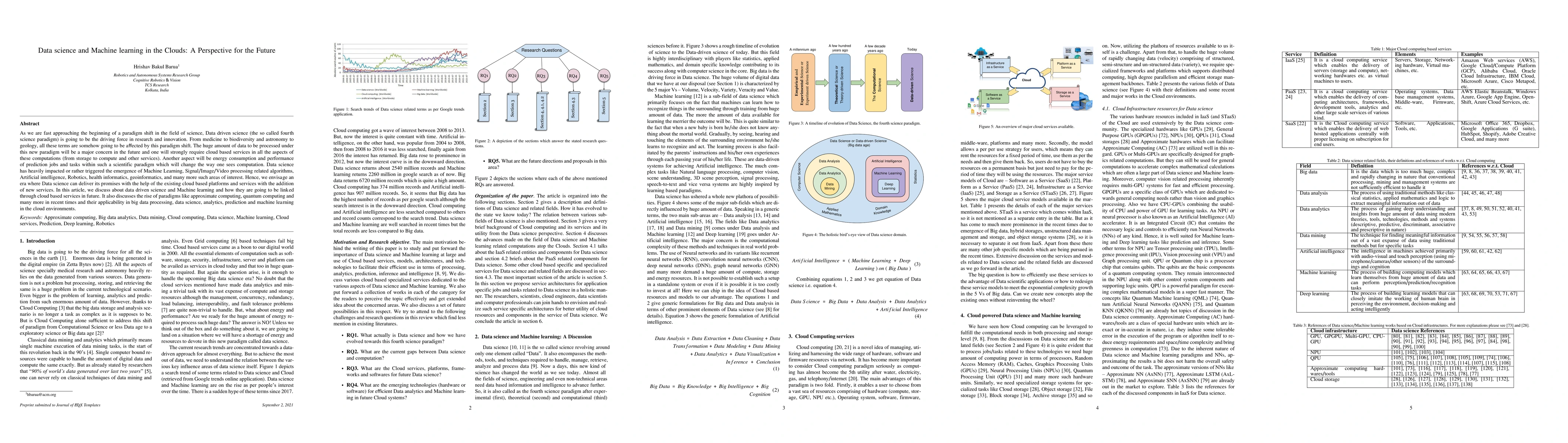 This paper explores the future of data science and machine learning driven by cloud-based services, emphasizing the paradigm shift towards data-driven science. It discusses the integration of cloud platforms to handle vast data, alongside emerging paradigms like approximate and quantum computing, to enhance performance and reduce energy consumption in big data processing and analytics.