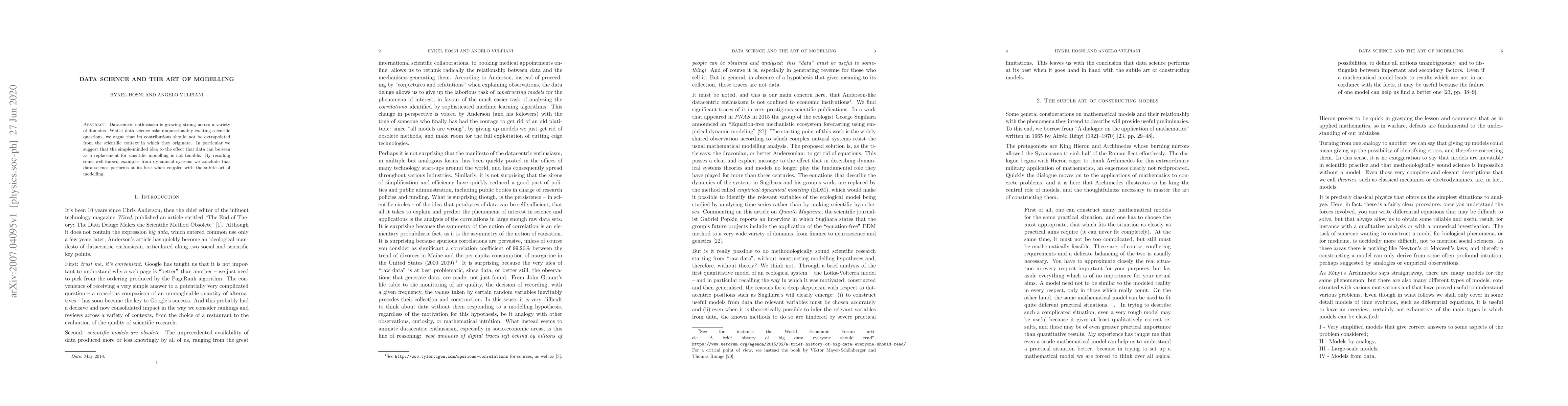 Data science can't replace scientific modeling; it's best when paired with the art of modeling to produce accurate results. This paper highlights the importance of combining data-driven approaches with traditional modeling techniques for effective problem-solving.