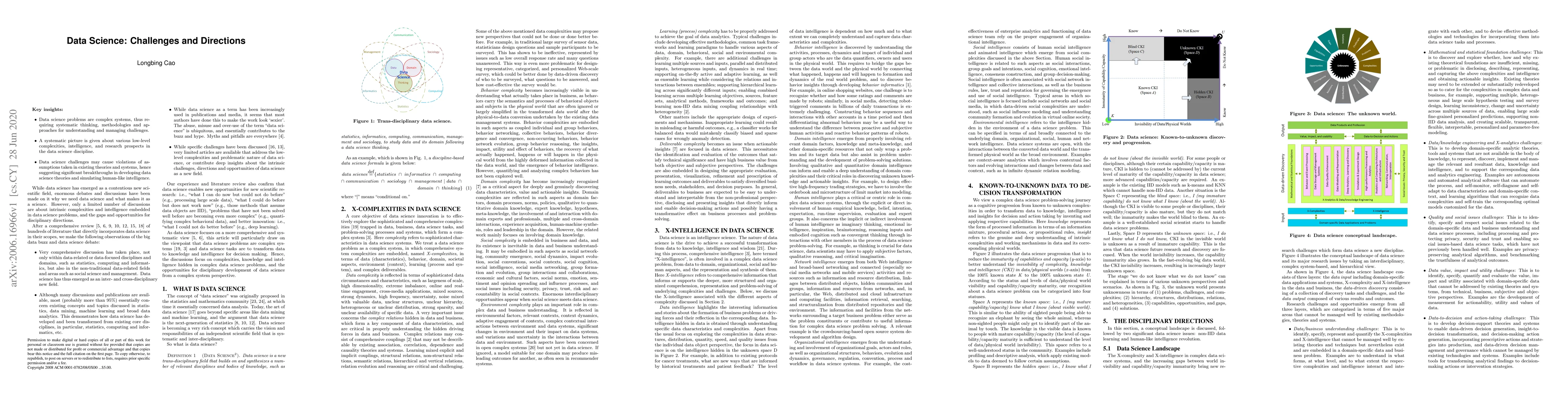 While data science has emerged as a contentious new scientific field, enormous debates and discussions have been made on it why we need data science and what makes it as a science. In reviewing hundreds of pieces of literature which include data science in their titles, we find that the majority of the discussions essentially concern statistics, data mining, machine learning, big data, or broadly data analytics, and only a limited number of new data-driven challenges and directions have been explored. In this paper, we explore the intrinsic challenges and directions inspired by comprehensively exploring the complexities and intelligence embedded in data science problems. We focus on the research and innovation challenges inspired by the nature of data science problems as complex systems, and the methodologies for handling such systems.