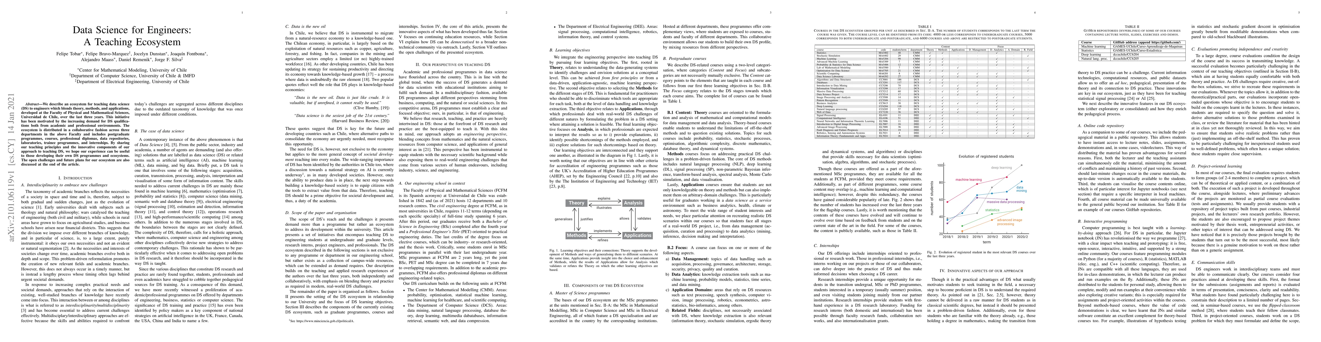 This paper outlines an ecosystem developed at Universidad de Chile to teach data science to engineers, integrating theory, methods, and applications across multiple departments. The initiative aims to meet growing demand for data science qualifications and includes postgraduate programs, courses, and internships.