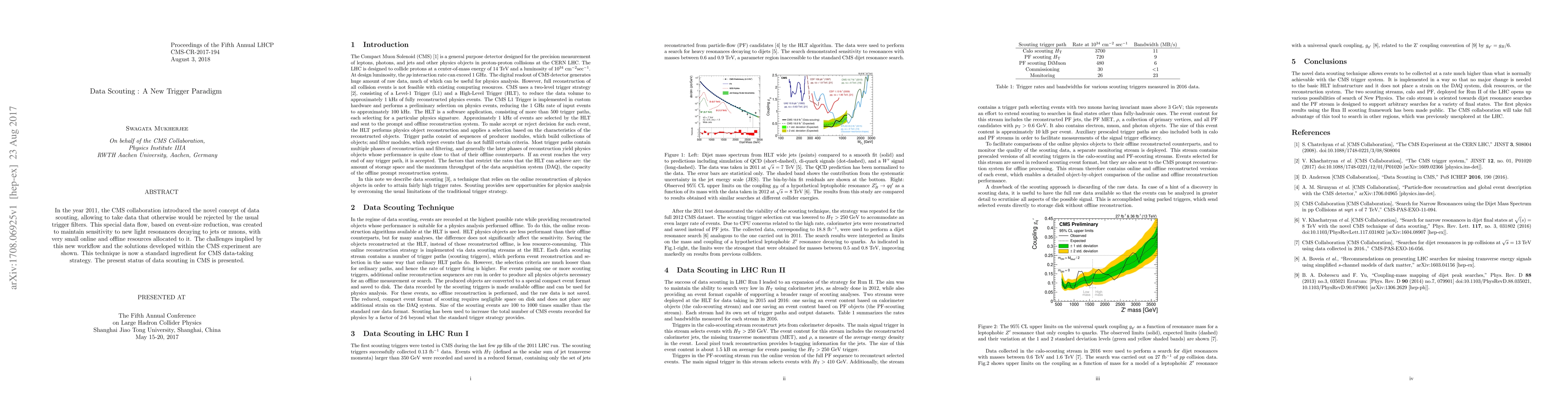 The CMS collaboration in 2011 introduced data scouting to capture data that would otherwise be rejected by traditional trigger filters, focusing on light resonances decaying to jets or muons. This new workflow, requiring minimal online and offline resources, has become a standard part of CMS's data-taking strategy.