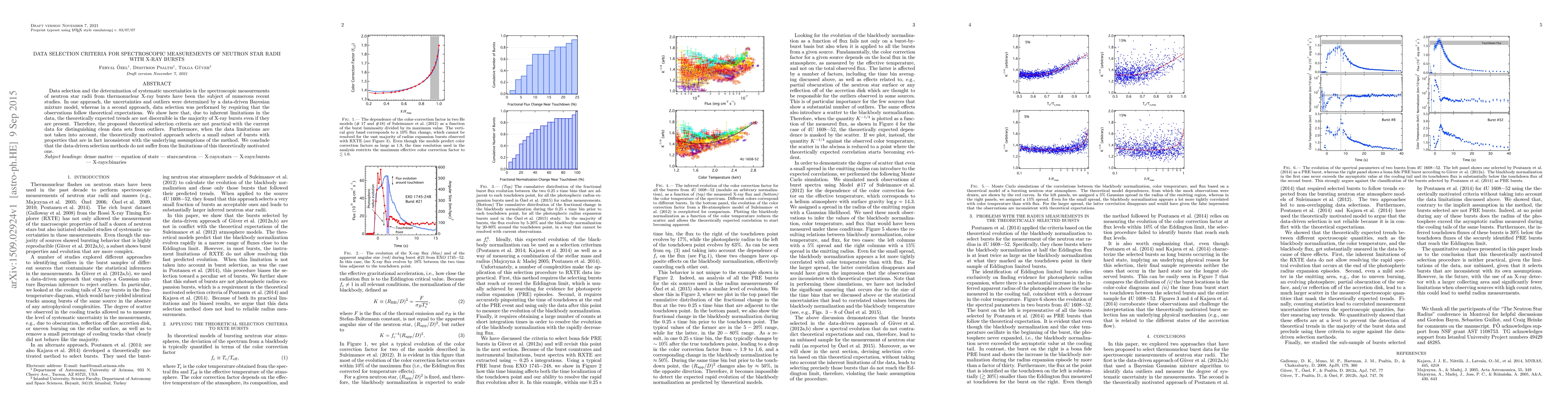 This paper argues that theoretically motivated criteria for selecting data for neutron star radius measurements from X-ray bursts are impractical due to data limitations, while data-driven Bayesian methods are more effective in distinguishing clean data sets from outliers.