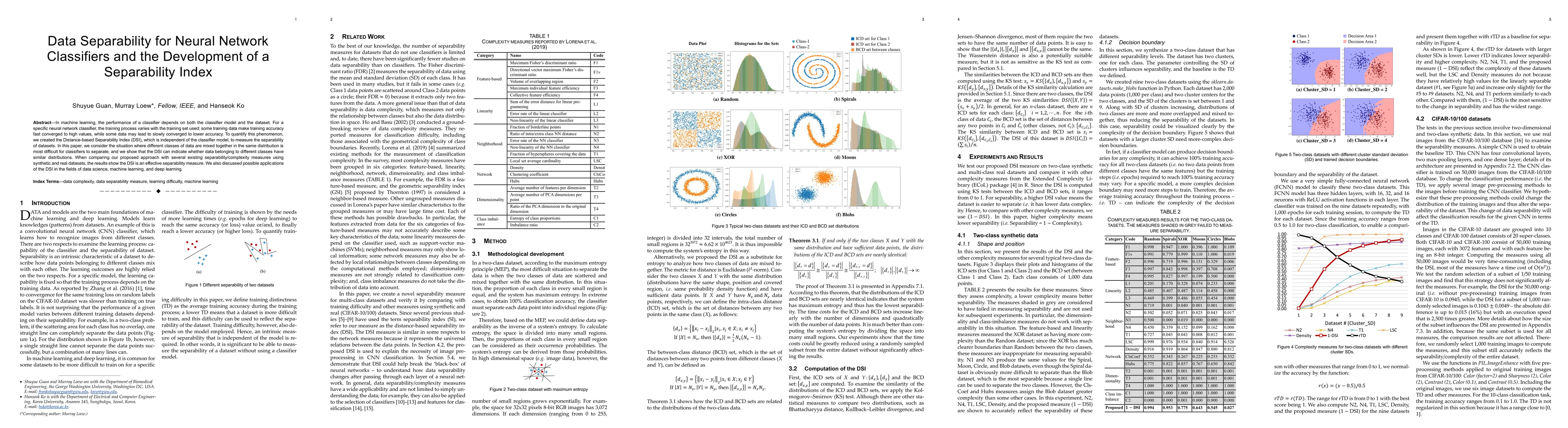 This paper introduces the Distance-based Separability Index (DSI) to quantify the separability of datasets for neural network classifiers, independent of the classifier model. The DSI effectively measures the difficulty of separating mixed classes and shows promising results compared to existing measures on both synthetic and real datasets.