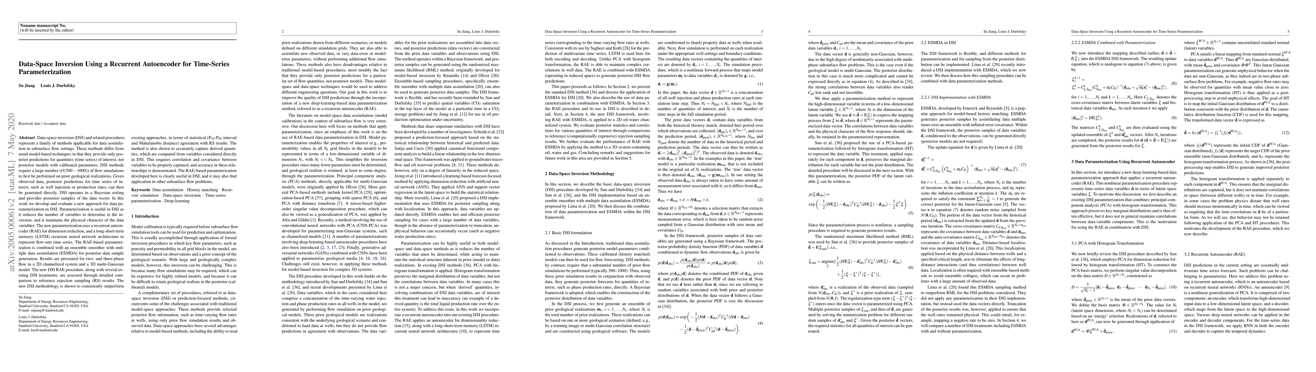 A new method for data-space inversion in subsurface flow using a recurrent autoencoder was developed and evaluated, showing consistent improvement over existing approaches in terms of statistical agreement and accuracy in capturing correlations between variables.