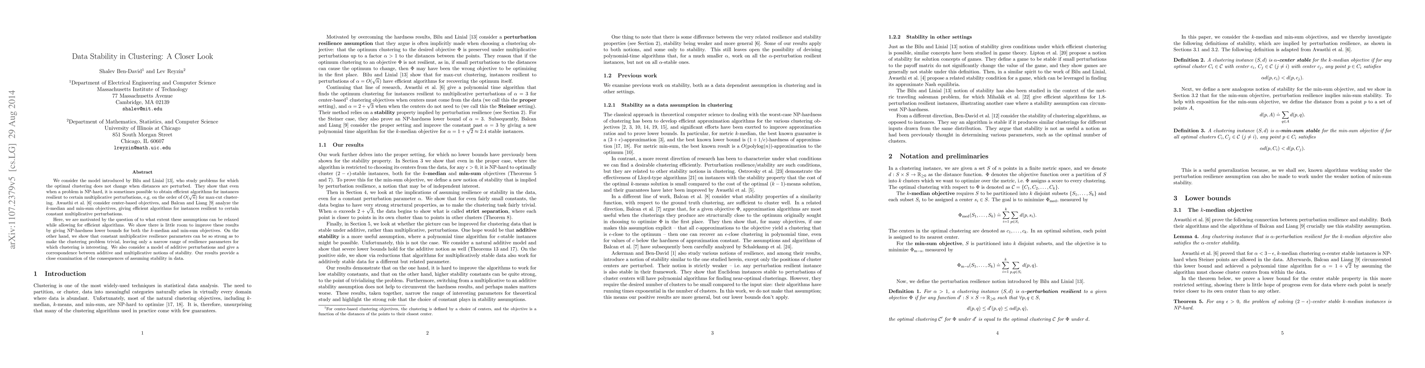 We consider the model introduced by Bilu and Linial (2010), who study problems for which the optimal clustering does not change when distances are perturbed. They show that even when a problem is NP-hard, it is sometimes possible to obtain efficient algorithms for instances resilient to certain multiplicative perturbations, e.g. on the order of $O(\sqrt{n})$ for max-cut clustering. Awasthi et al. (2010) consider center-based objectives, and Balcan and Liang (2011) analyze the $k$-median and min-sum objectives, giving efficient algorithms for instances resilient to certain constant multiplicative perturbations. Here, we are motivated by the question of to what extent these assumptions can be relaxed while allowing for efficient algorithms. We show there is little room to improve these results by giving NP-hardness lower bounds for both the $k$-median and min-sum objectives. On the other hand, we show that constant multiplicative resilience parameters can be so strong as to make the clustering problem trivial, leaving only a narrow range of resilience parameters for which clustering is interesting. We also consider a model of additive perturbations and give a correspondence between additive and multiplicative notions of stability. Our results provide a close examination of the consequences of assuming stability in data.