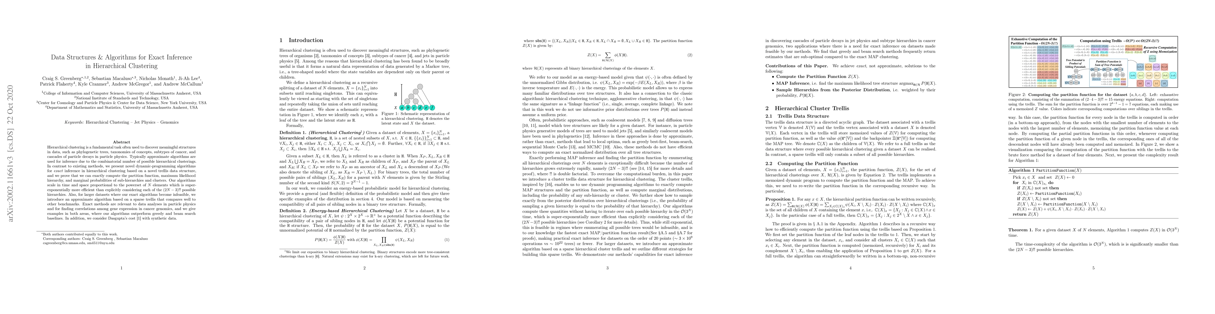 This paper introduces novel dynamic-programming algorithms for exact inference in hierarchical clustering using a new trellis data structure, achieving super-exponential efficiency improvements over traditional methods. It also provides an approximate algorithm for larger datasets and demonstrates its effectiveness in applications like particle physics and cancer genomics.