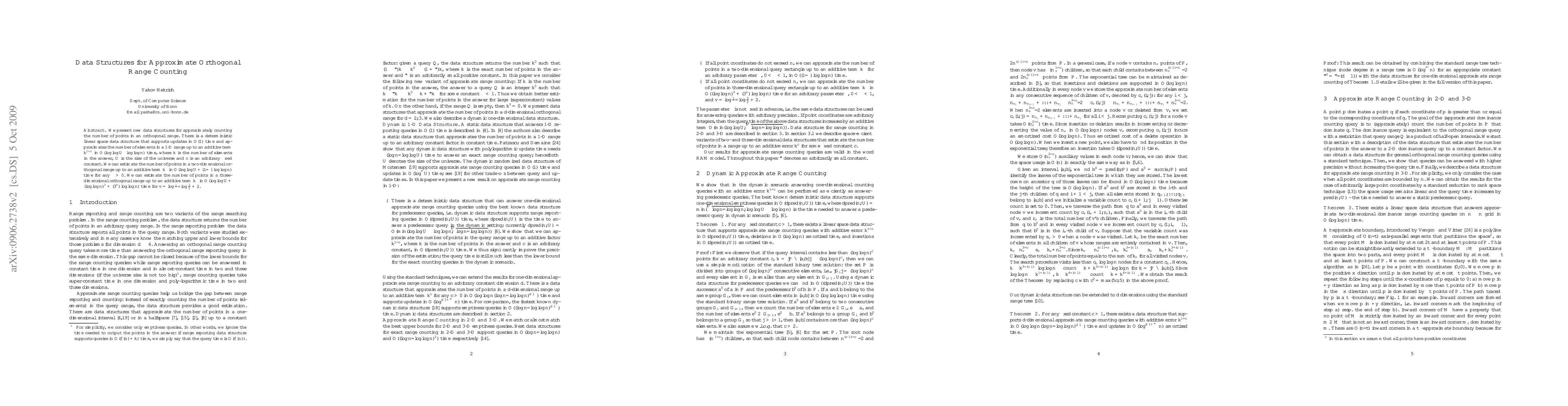 We present new data structures for approximately counting the number of points in orthogonal range. There is a deterministic linear space data structure that supports updates in O(1) time and approximates the number of elements in a 1-D range up to an additive term $k^{1/c}$ in $O(\log \log U\cdot\log \log n)$ time, where $k$ is the number of elements in the answer, $U$ is the size of the universe and $c$ is an arbitrary fixed constant. We can estimate the number of points in a two-dimensional orthogonal range up to an additive term $ k^{\rho}$ in $O(\log \log U+ (1/\rho)\log\log n)$ time for any $\rho>0$. We can estimate the number of points in a three-dimensional orthogonal range up to an additive term $k^{\rho}$ in $O(\log \log U + (\log\log n)^3+ (3^v)\log\log n)$ time for $v=\log \frac{1}{\rho}/\log {3/2}+2$.