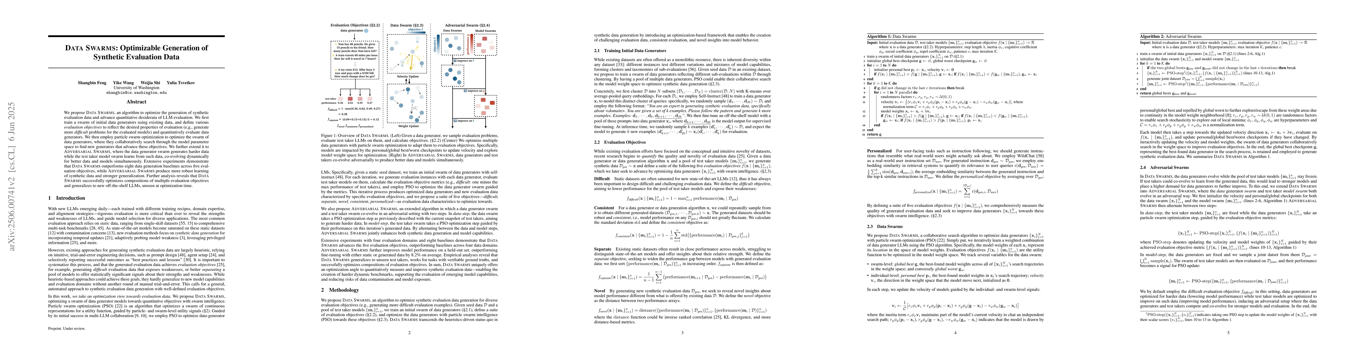 Researchers propose an algorithm called Data Swarms to optimize synthetic evaluation data generation for large language models, outperforming eight baselines across five objectives.